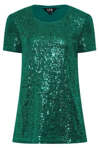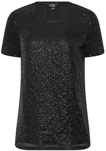 Long Tall Sally offers products for women 5�8� and over. At Long Tall Sally, our tall clothing is designed to fit and flatter tall frames throughout, available to shop in UK sizes 8-28 and up to a 38″ leg. Our models is 5’11” and wears a size 10. Add some sparkle into your wardrobe Made from a soft jersey fabric this top features a scoop neckline short sleeves sequin detail and a boxy fit. Style with leather trousers heels and a clutch bag for the ultimate night out look.