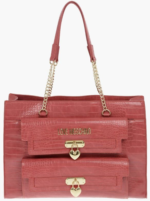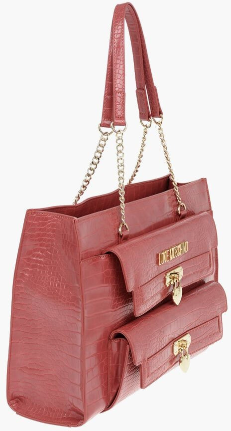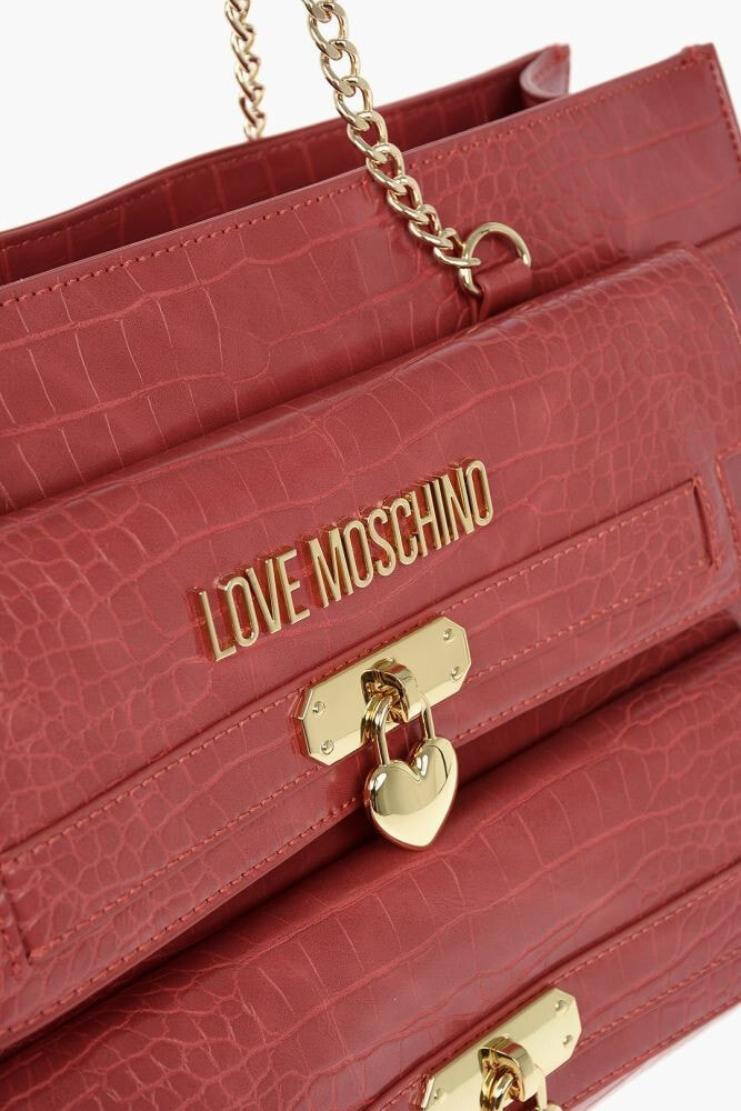 LOVE Faux Leather Crocodile Effect Tote Bag with Golden Deta