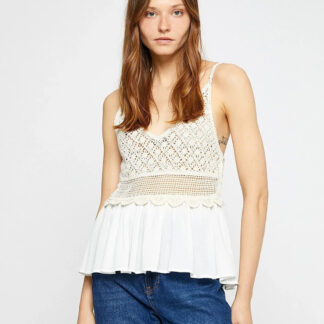 Çiçekli, yakası düğme detaylı, anvelop, saten crop atlet. Model Bilgileri: Boy:176 cm, Göğüs:83, Bel:63, Kalça:89, Modelin Bedeni:S