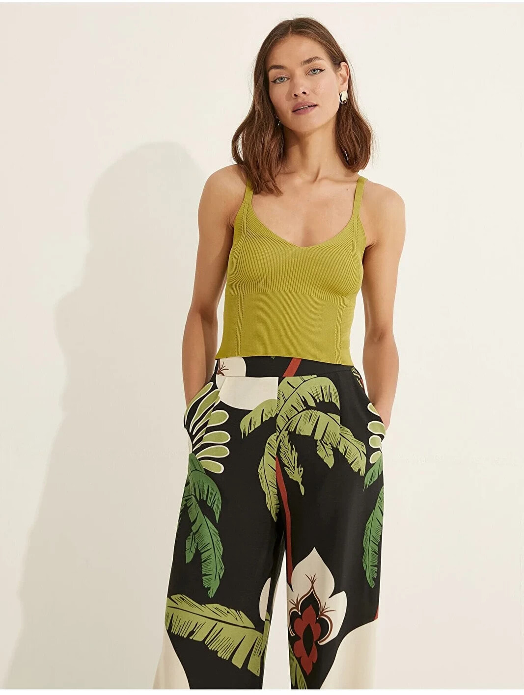 Melis ağazat x koton – V yaka triko atlet Model bilgileri:Boy:175 cm, göğüs:79, bel:61, kalça:86, modelin bedeni:S