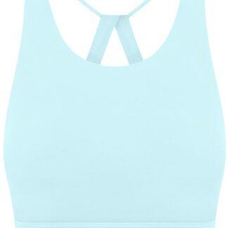 Sustainable material. Built-in cups provide secure support. Stretch mesh panel for breathability.