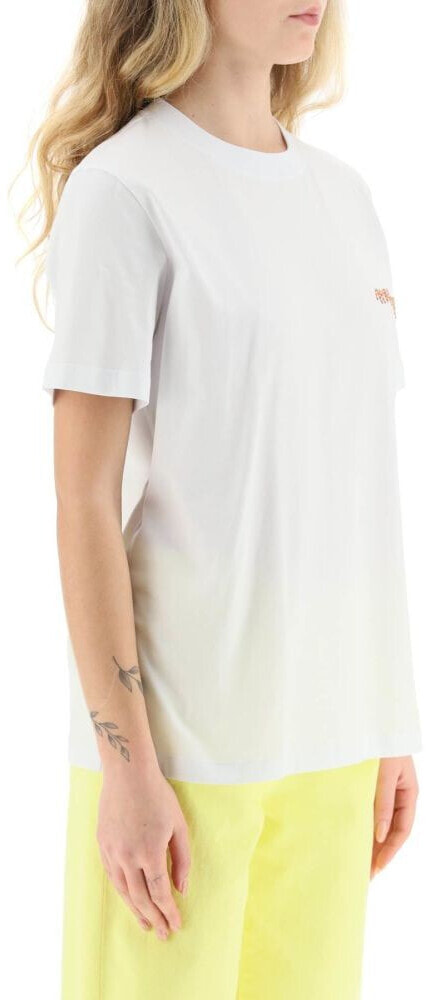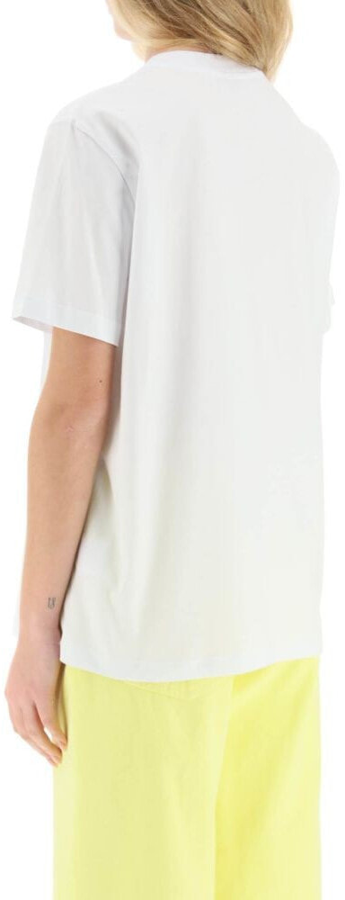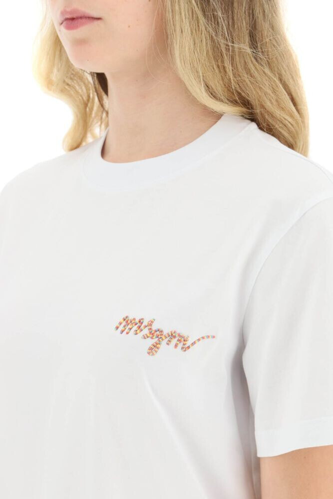 Short-sleeve cotton jersey t-shirt by MSGM, personalized by the multicolored logo lettering embroidery on the chest. Wide fit, micro-ribbed crew neck. The model is 177 cm tall and wears a size XS.