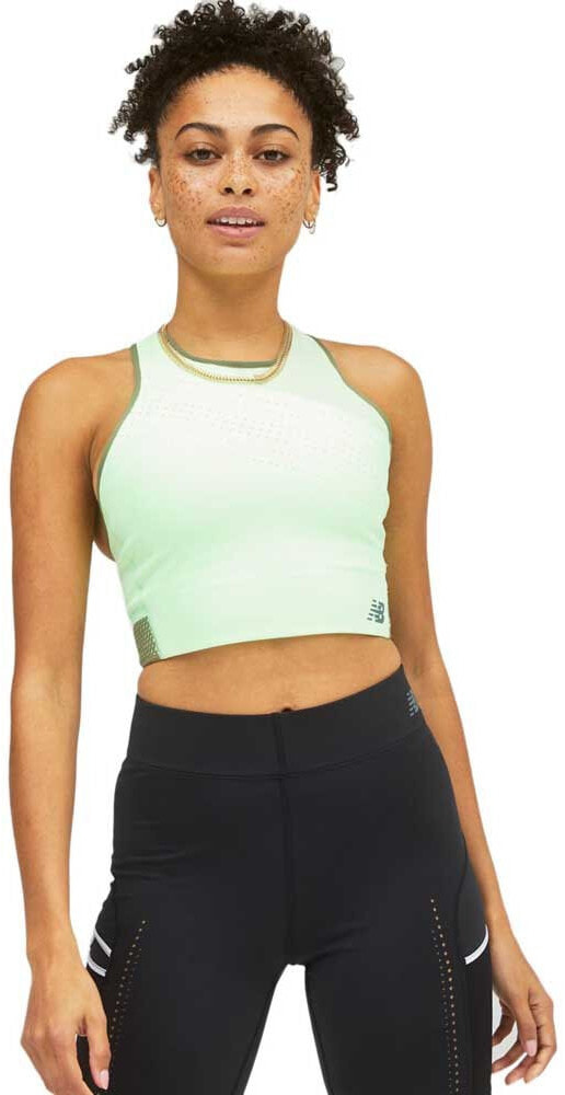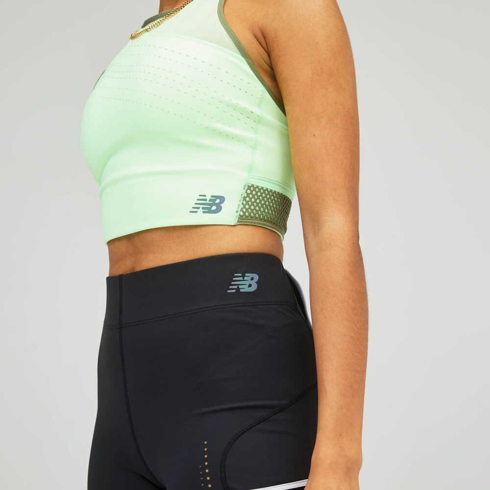The New Balance Q SPEED Shape Shield Crop Bra features their innovative Shape Shield fabric for lightweight coverage and comfort that won´t distract you from your performance.