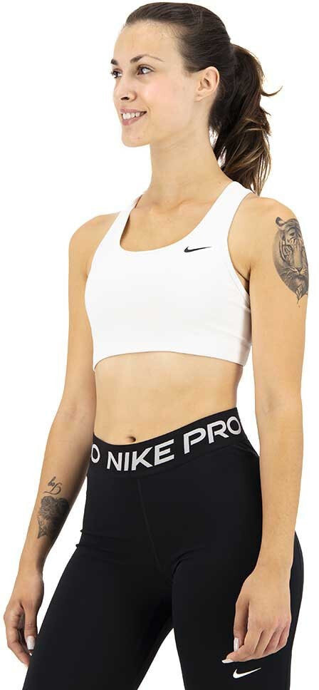 The Nike Swoosh Sports Bra is created with tight, stretchy fabric to keep you contained and comfortable during jumping, running or lifting. A racerback design lets you move naturally when you´re getting after it.