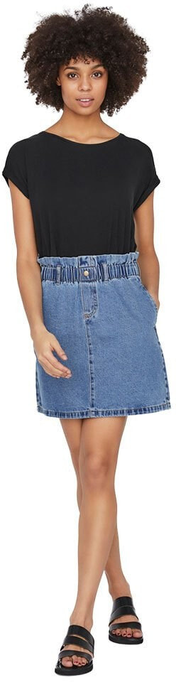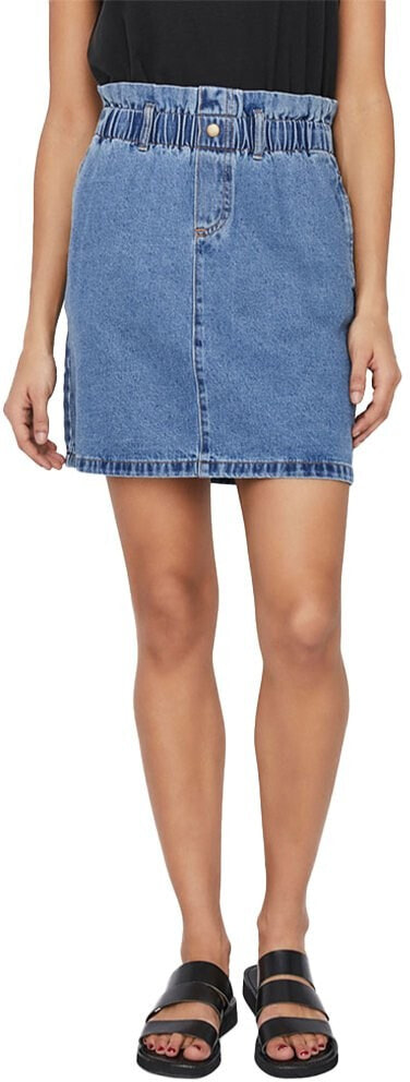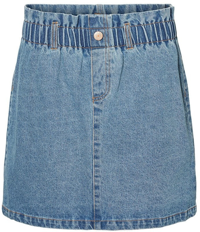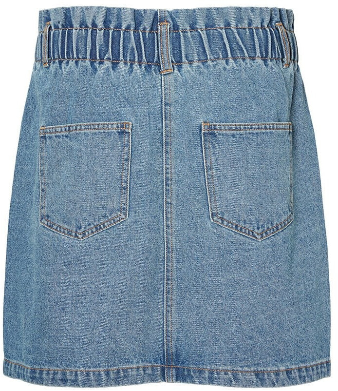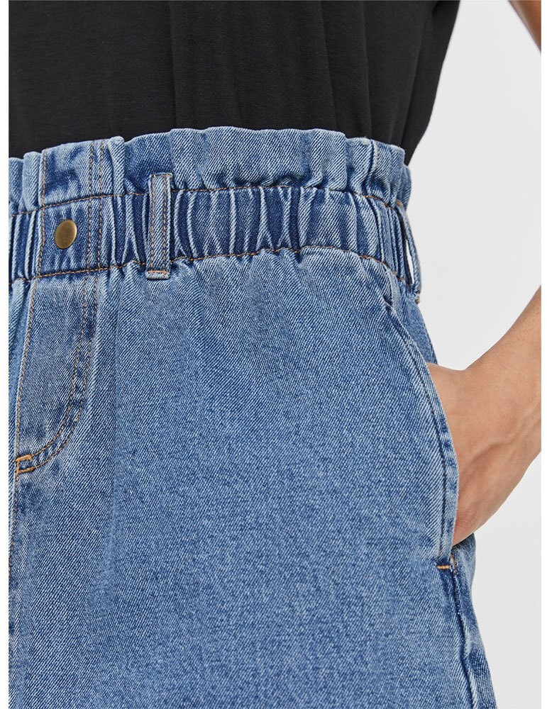 Mini denim skirt with high paperbag waist and four pockets. Style the skirt with a t-shirt and sneakers, when it is hot and sunny outside.