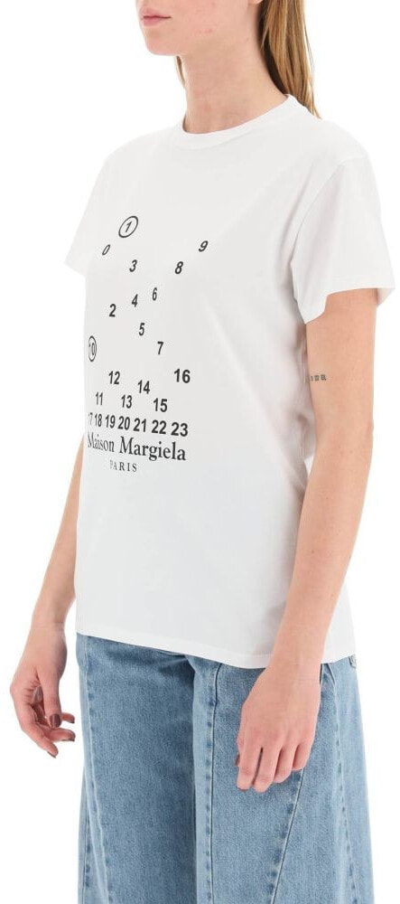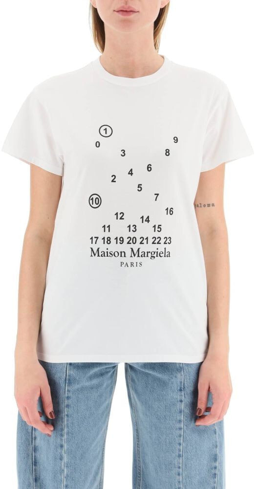Maison Margiela crew neck t-shirt in pure cotton jersey, printed with a reinterpretation of the brand’s emblematic numeric logo. Micro-ribbed neck, regular fit. The model is 177 cm tall and wears a size XS.