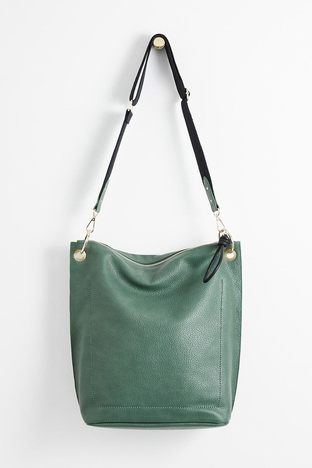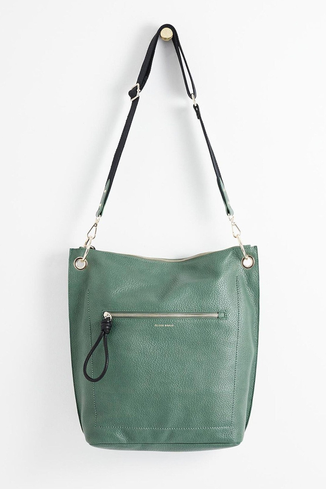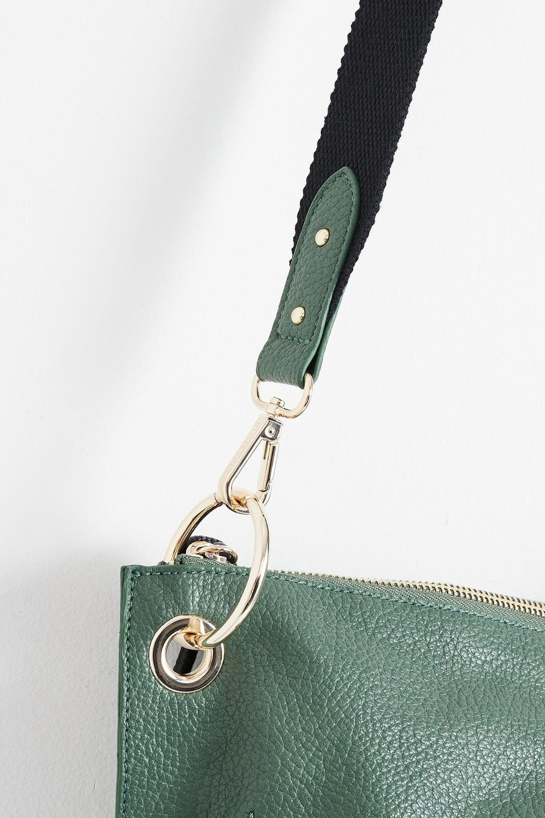 In a square silhouette, this teal green tote bag features a detachable black strap and is complete with zip fastenings and golden hardware.