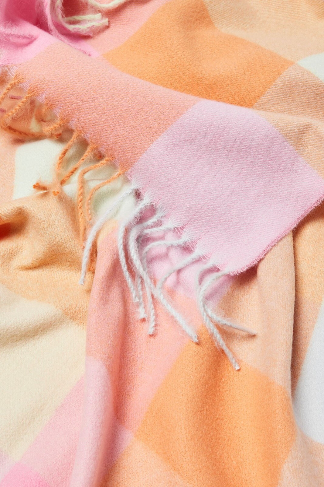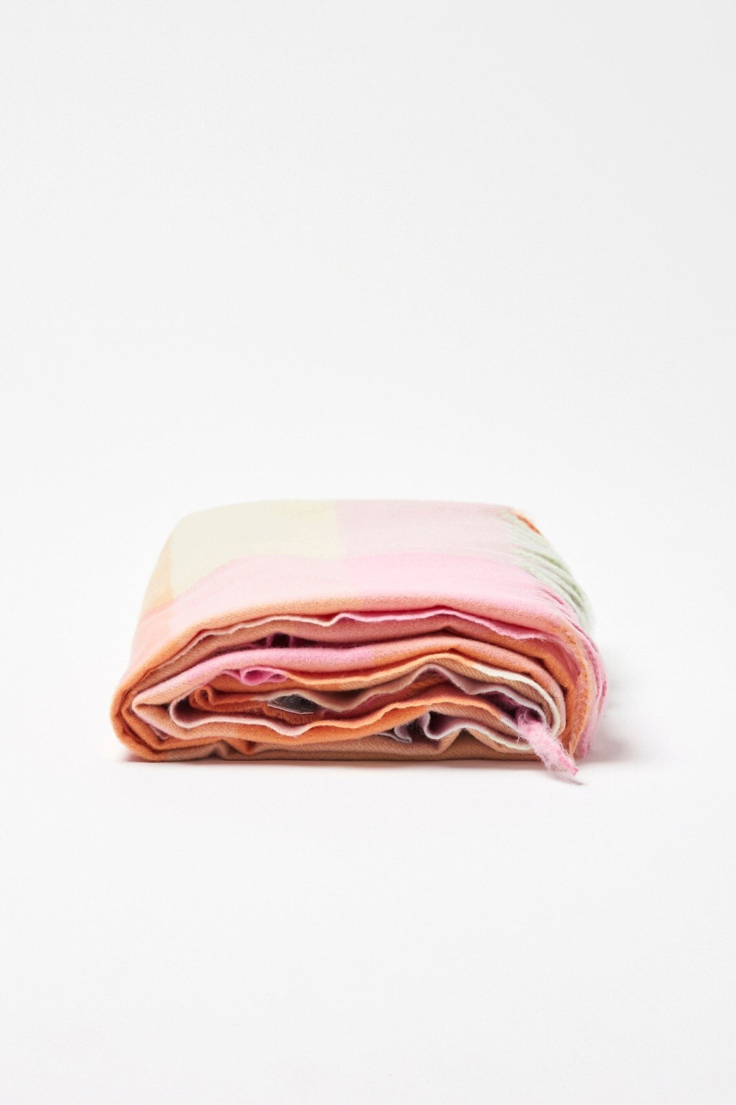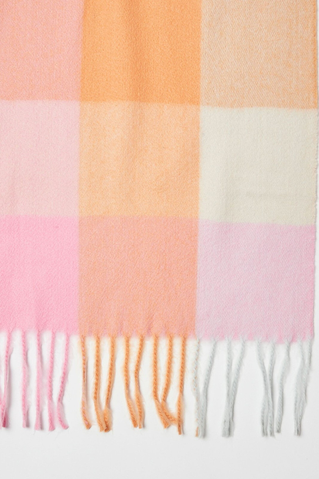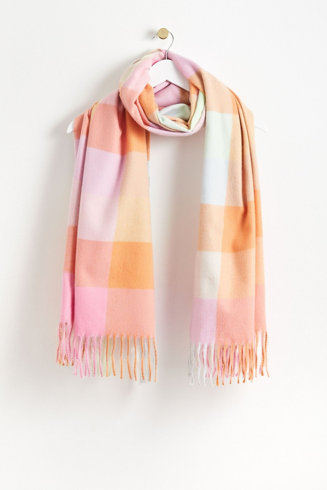 In a soft fabric, this midweight scarf comes in a large check print in pink, orange and yellow tones. Complete with tassel edges, add to your outfit to bring a touch of colour to your look.