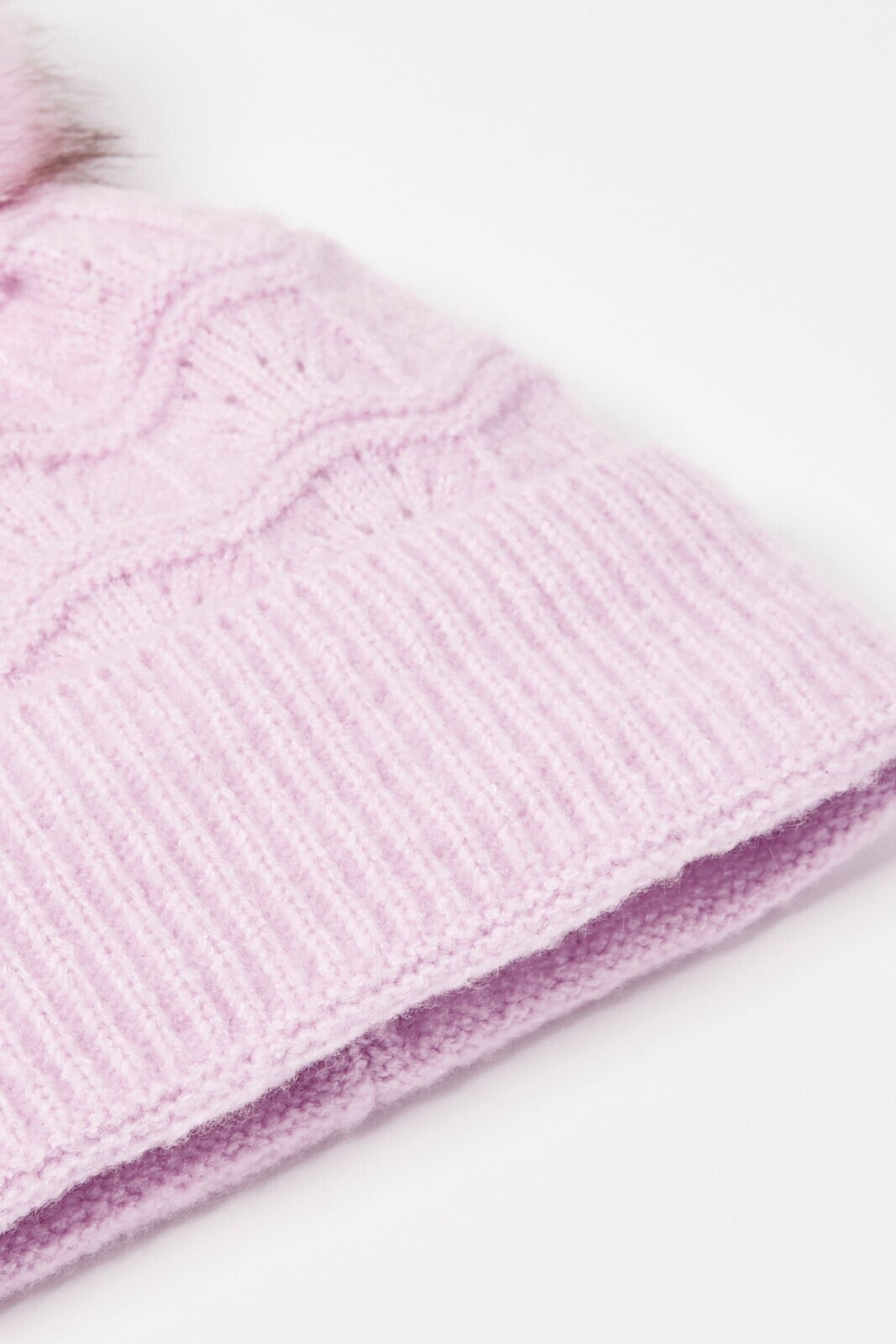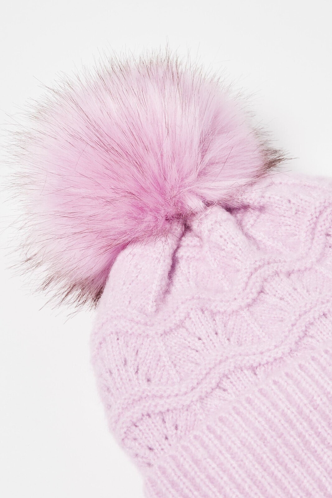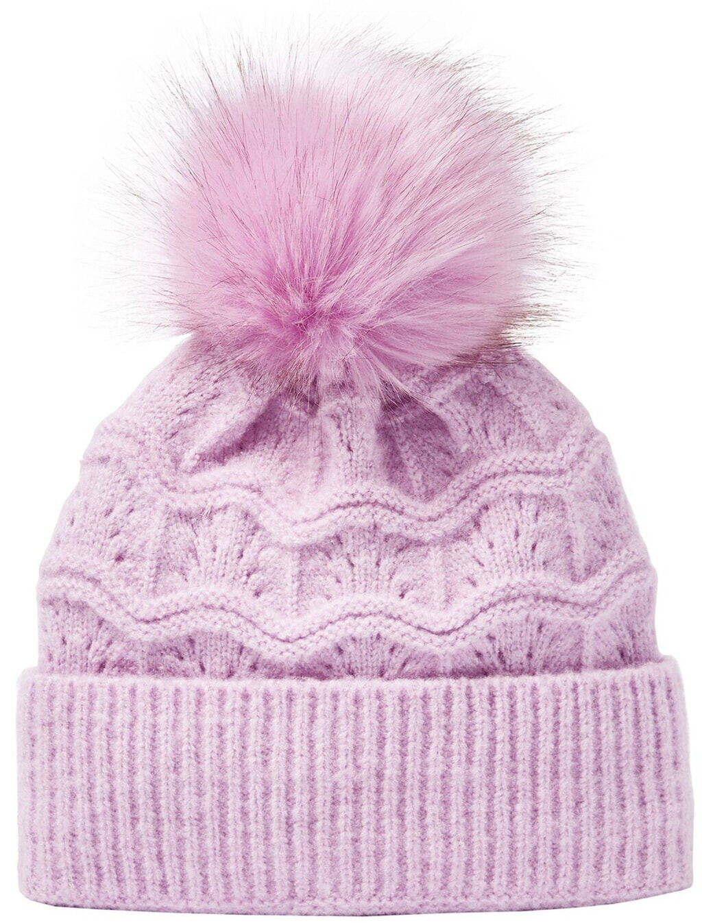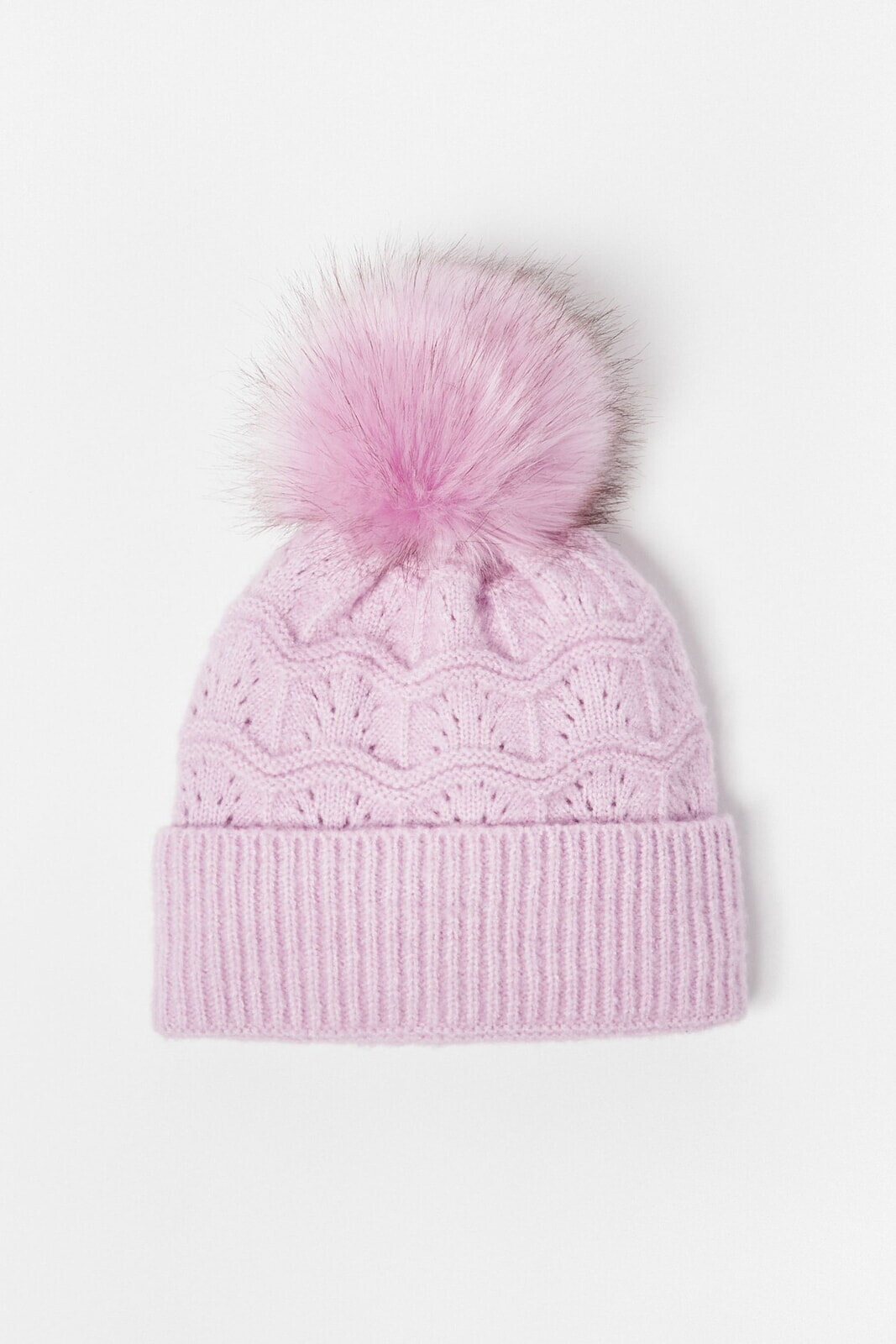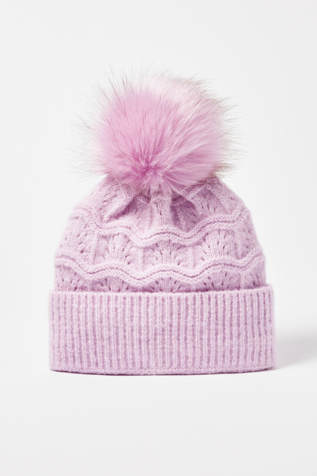 Stitchy and fun, this purple knitted beanie hat has a fun design which is complete with a rib edge and fluffy pom.
