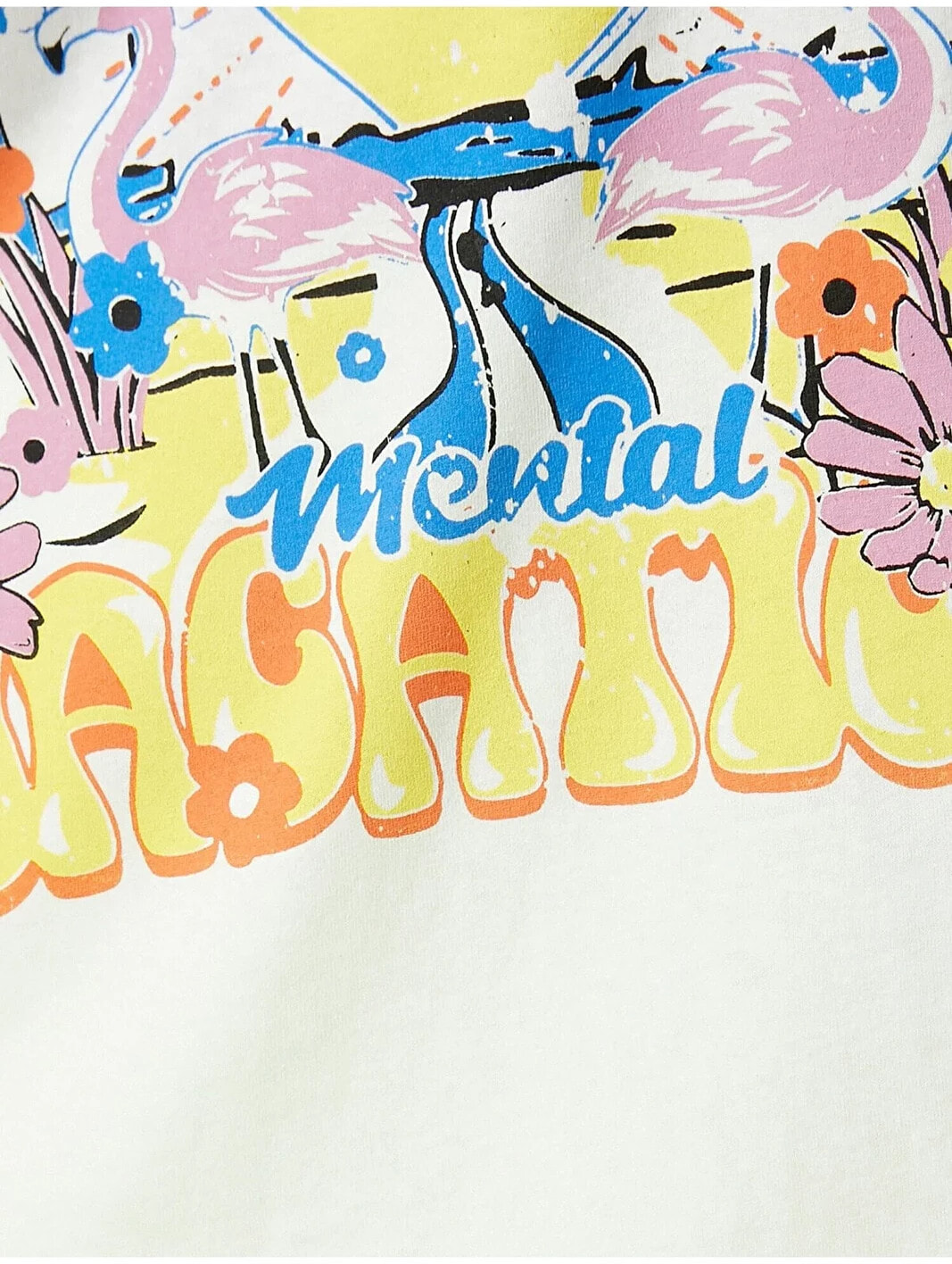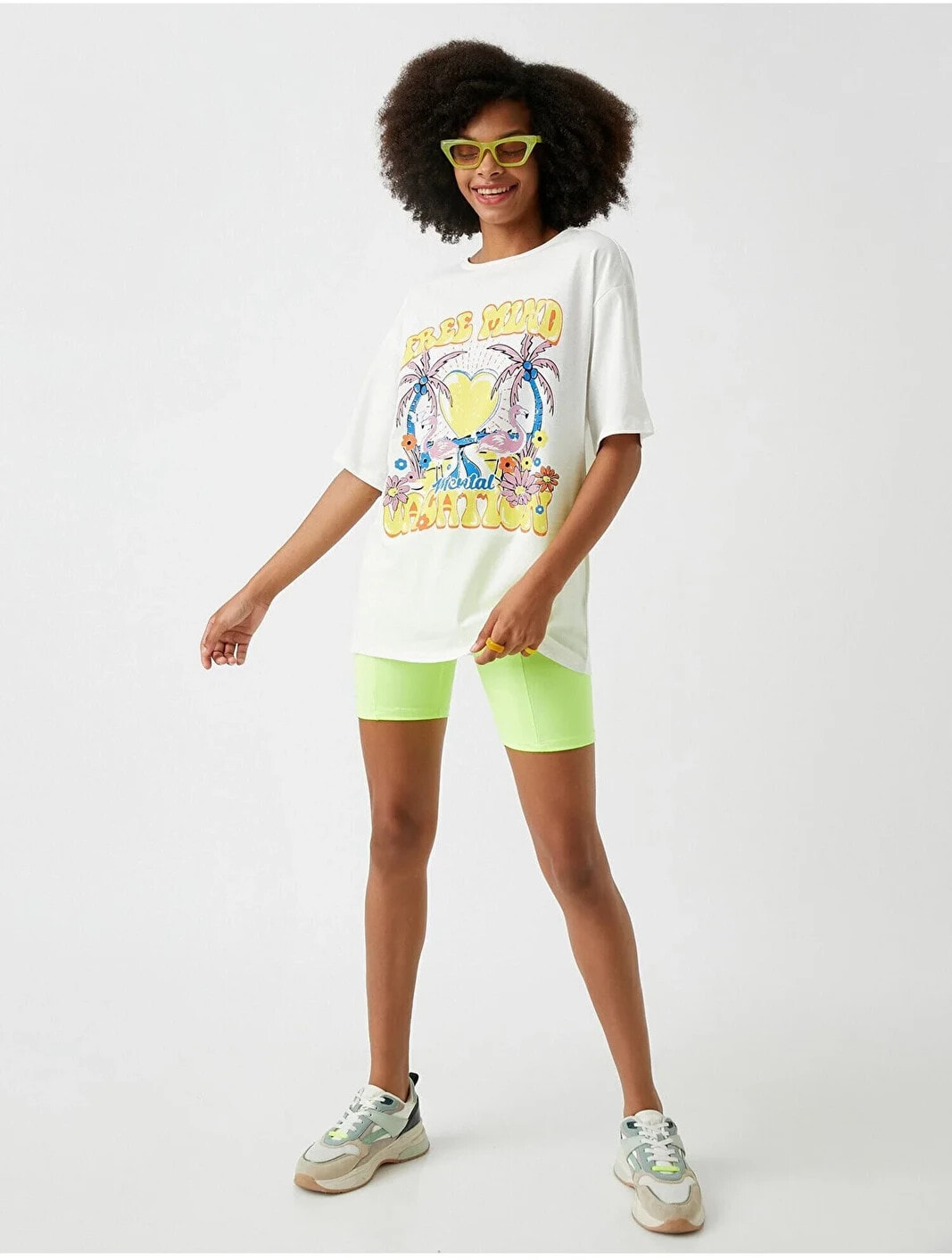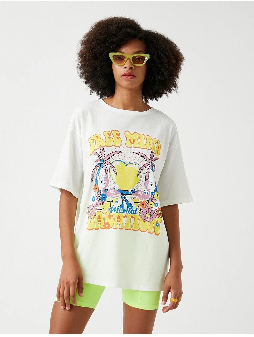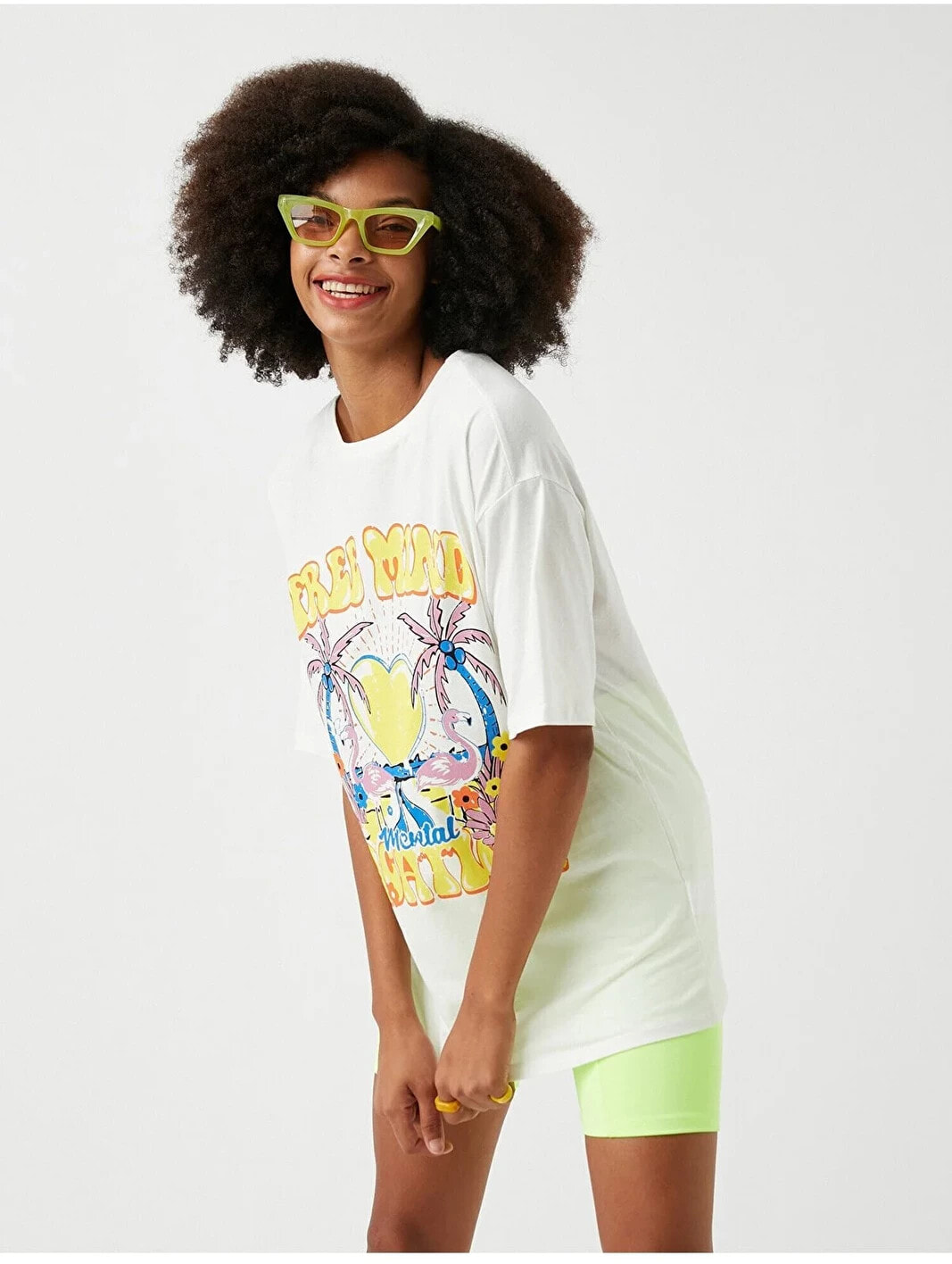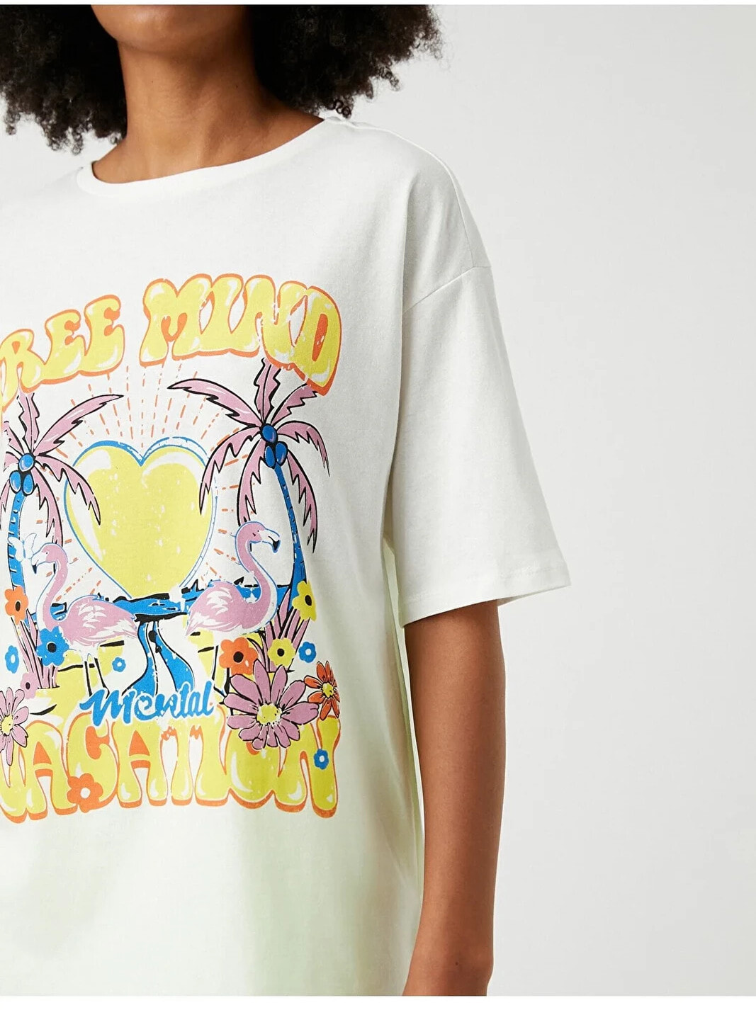 Oversize Tişört Tropikal Baskılı Pamuklu