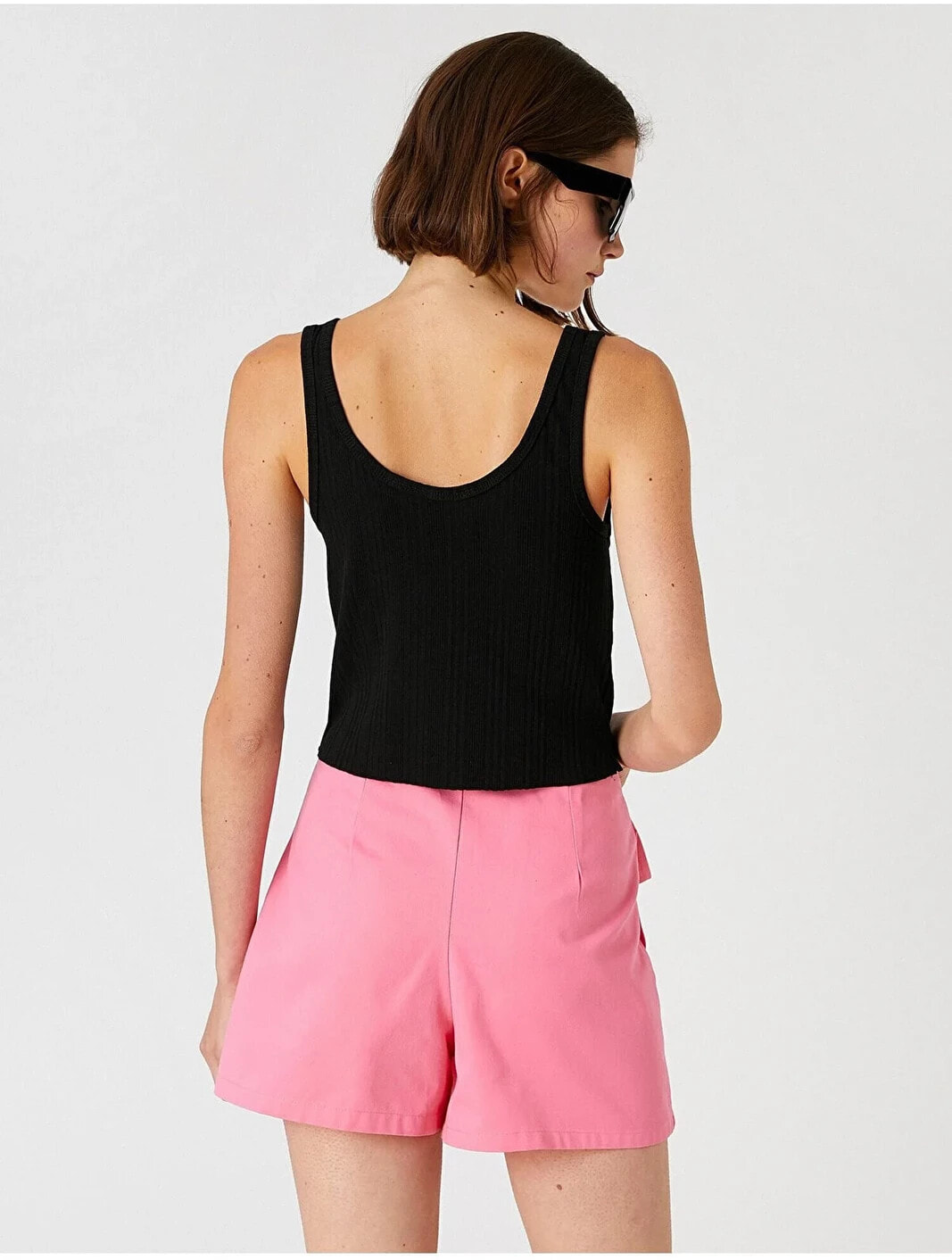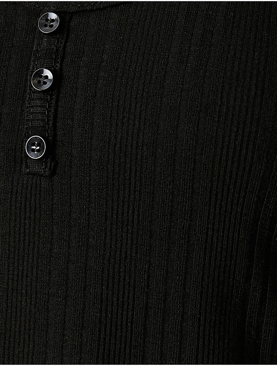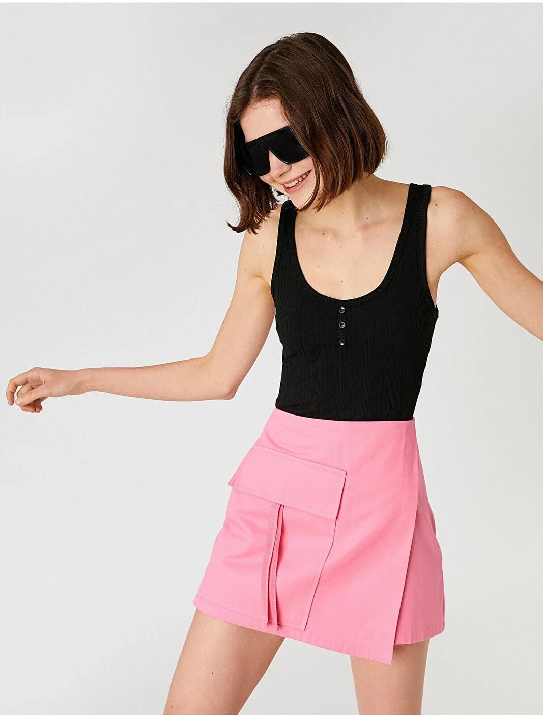 Düğme detaylı, oyuk yaka atlet. Model Bilgileri: Boy:175 cm, Göğüs:76, Bel:58, Kalça:1, Modelin Bedeni:S