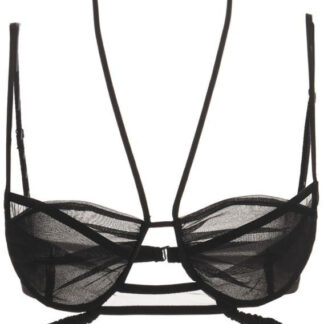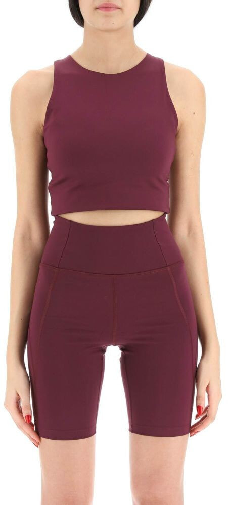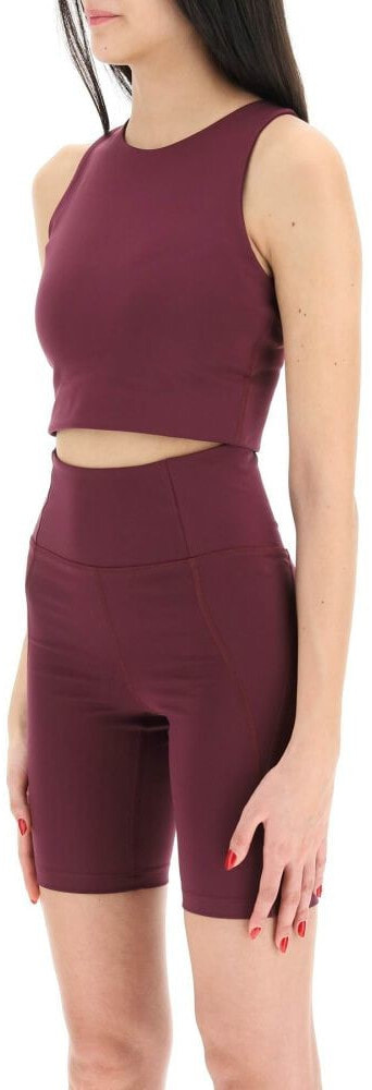 Girlfriend Collective recyclable bra with elastic hem and racerback. Model height is 177 cm and she is wearing a size S.