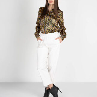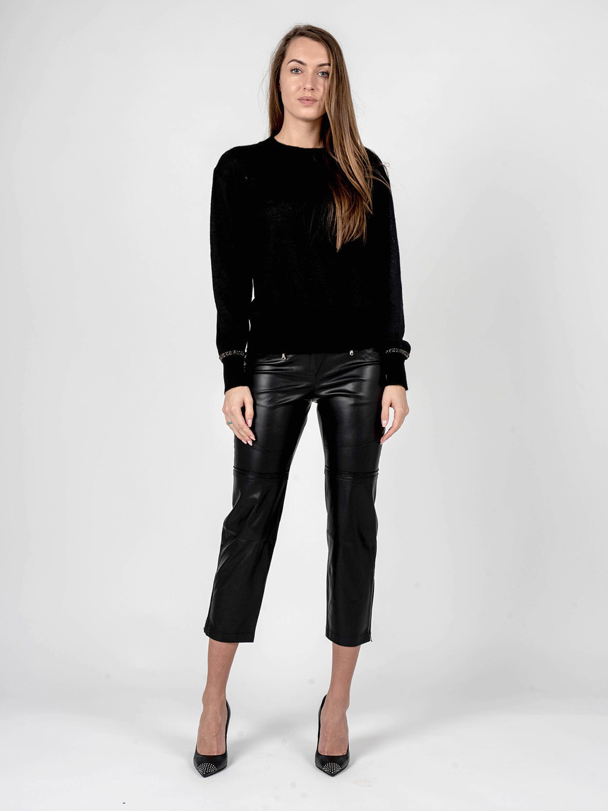 Zapinane na zamek błyskawiczny, guzik oraz sygnowaną napę