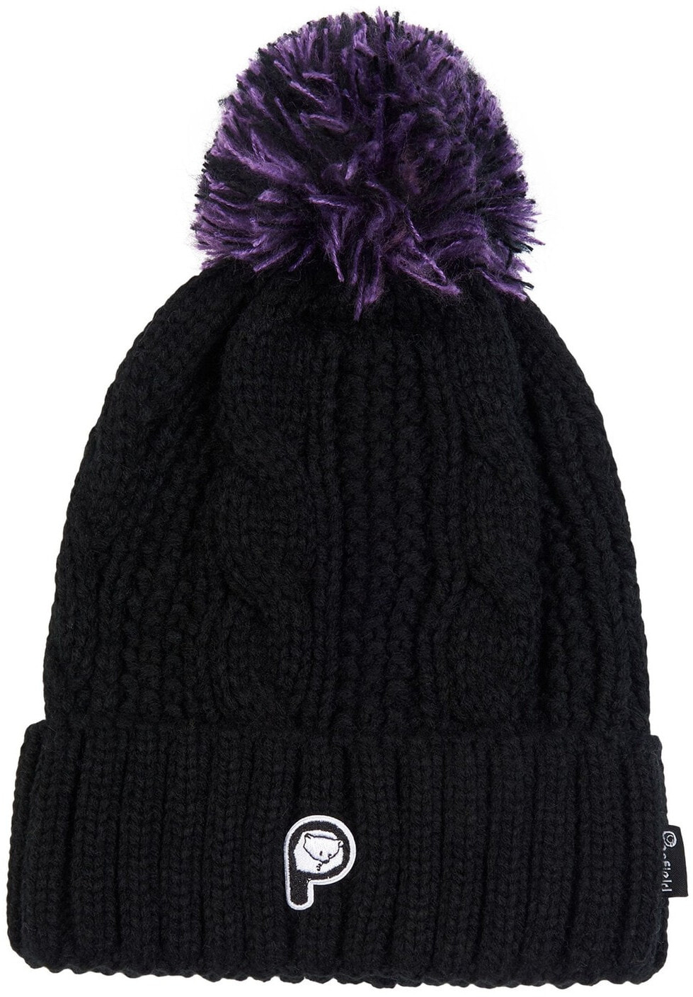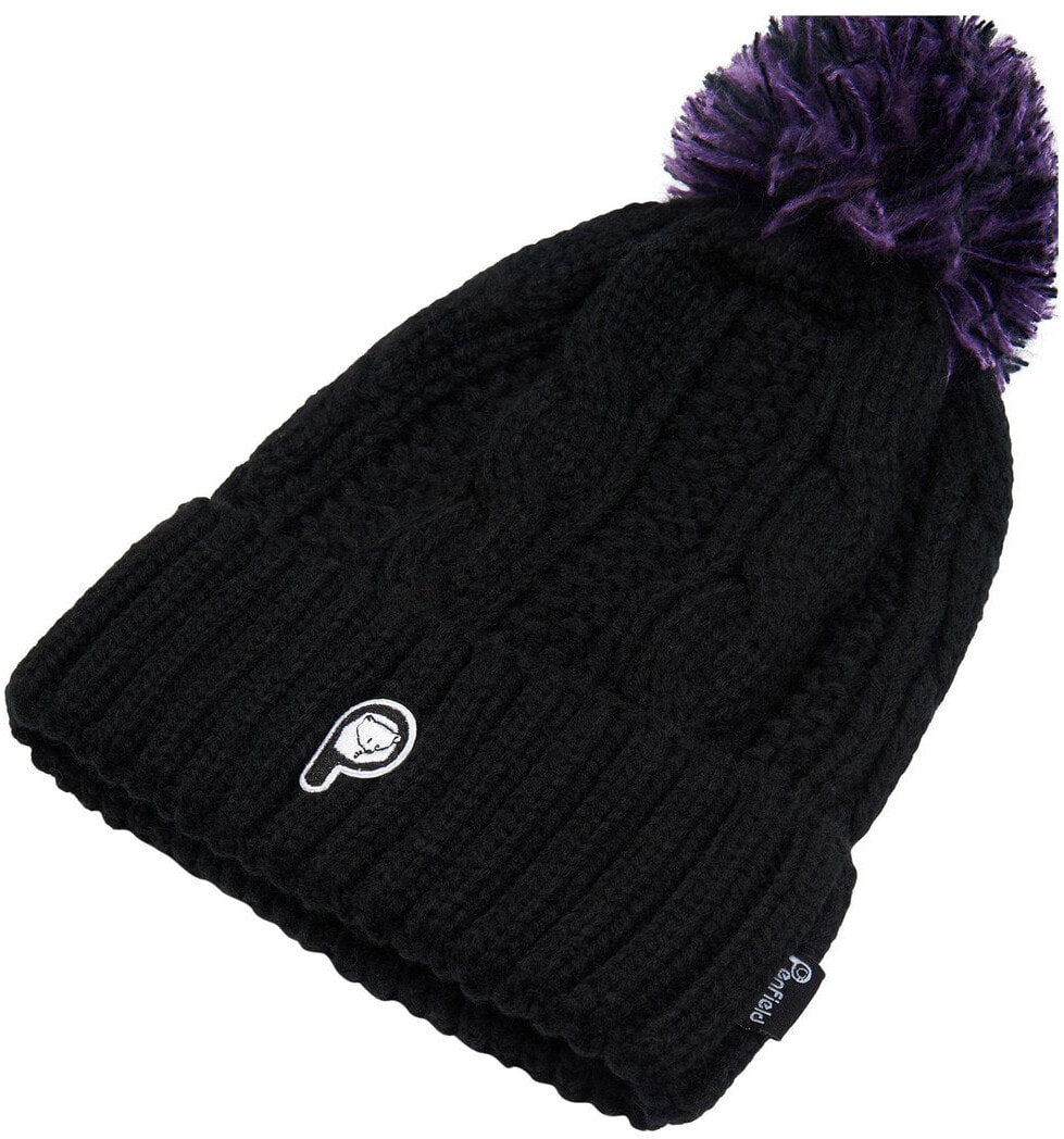 Penfield Black Cable Knit Striped Bobble Hat