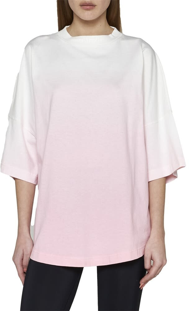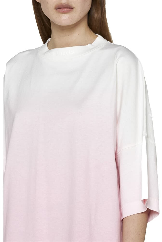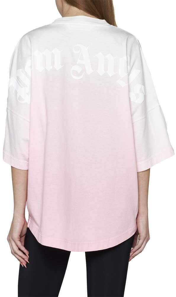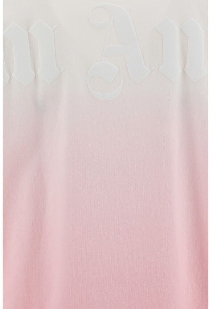 Cotton Gradient Over Logo T-Shirt by Palm Angels, ribbed crew neck with iconic brand monogram print, faded pattern, iconic brand monogram embossed on back, oversized fit.