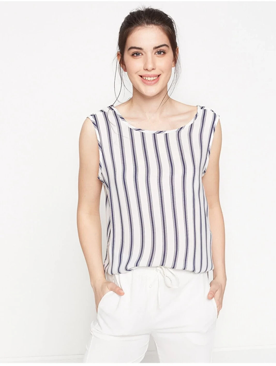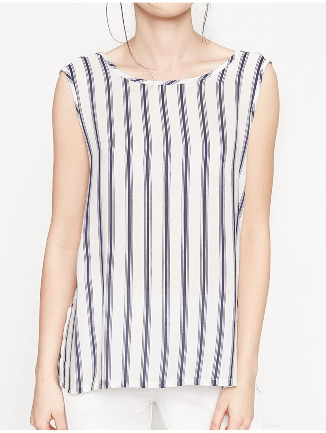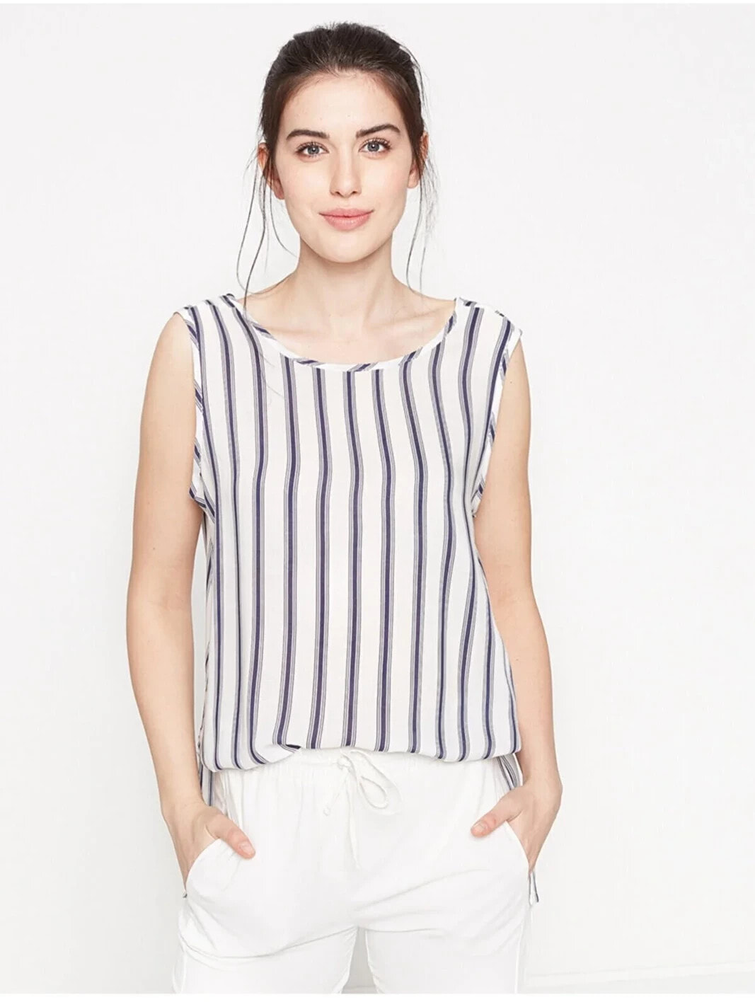 Marin detaylar ile yazı şehirlere taşıyoruz! Çizgili kolsuz bu ürünü denim ve beyaz pantolonlarınız ile kombinleyerek yaz stillerinizi hareketlendirin. Oyuk Yaka, Kolsuz AtletManken ÖlçüleriBoy: ‘182’Göğüs Çevresi: ’80’Bel Genişliği: ’67’Kalça Genişliği: ’96’ Materiel:%100 Rayon Height:182 Waist:67 Breast:80 Beam:96 Gender:Kadın