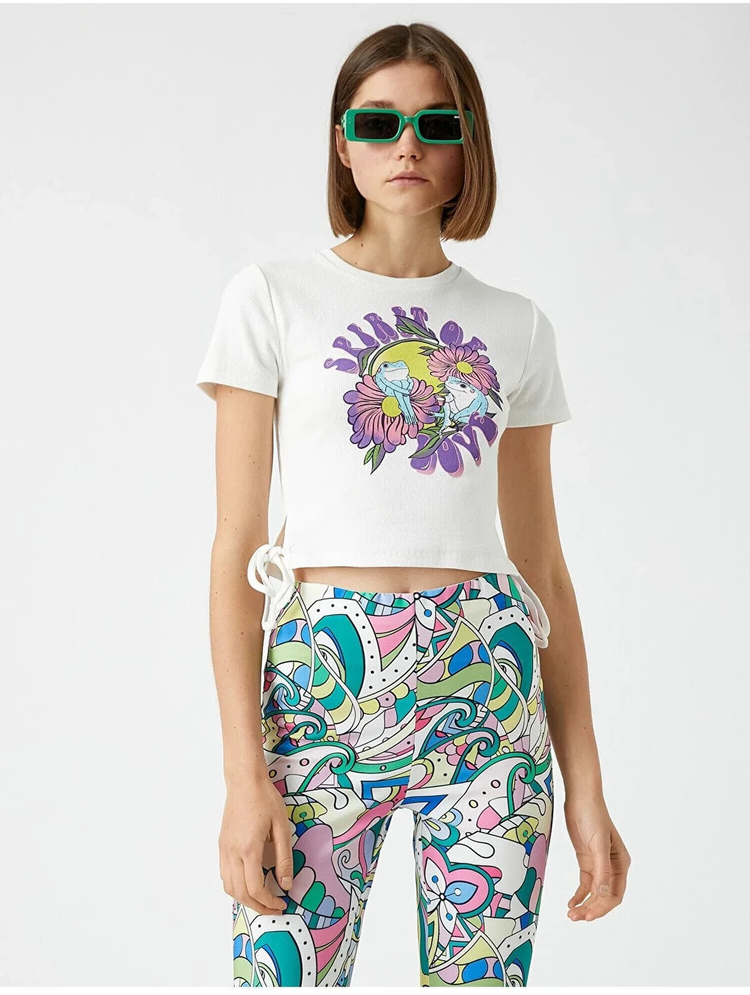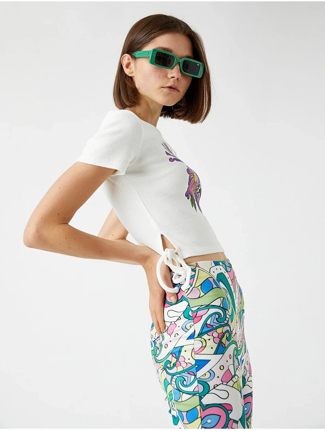 Sıcak yaz günlerinin vazgeçilmezi bisiklet yaka, bağlama detaylı tişört ile stilinizi parlatabilirsiniz. Model Bilgileri: Boy:175 cm, Göğüs:76, Bel:58, Kalça:1, Modelin Bedeni:S