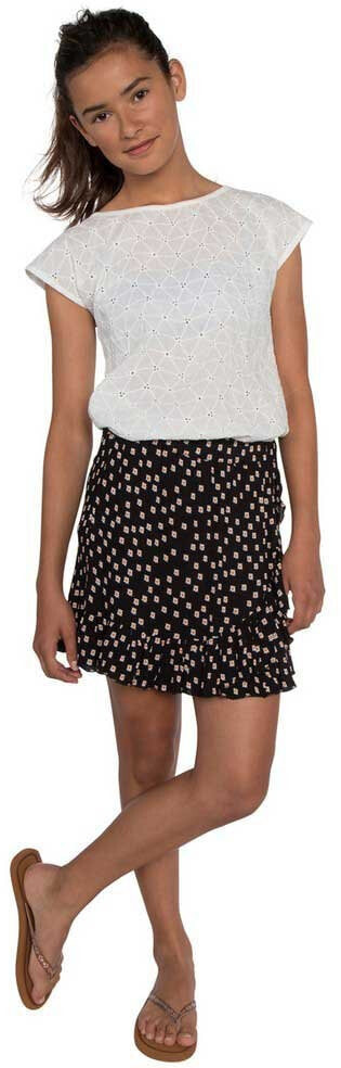 Introducing the conchita jr by protest. this gorgeous skirt is made of viscose crepe, which makes it soft and lightweight, perfect for those warm days. the skirt is printed with an all over mini print. the waistband is elasticated. there’s a wrap detail at the front of the skirt and a fabulous ruffle runs along the edge of the fabric. the skirt you can’t live without this summer, the conchita by protest.