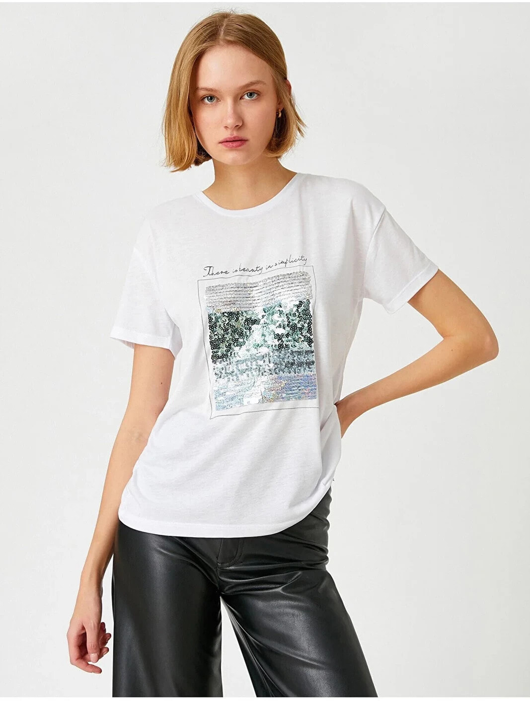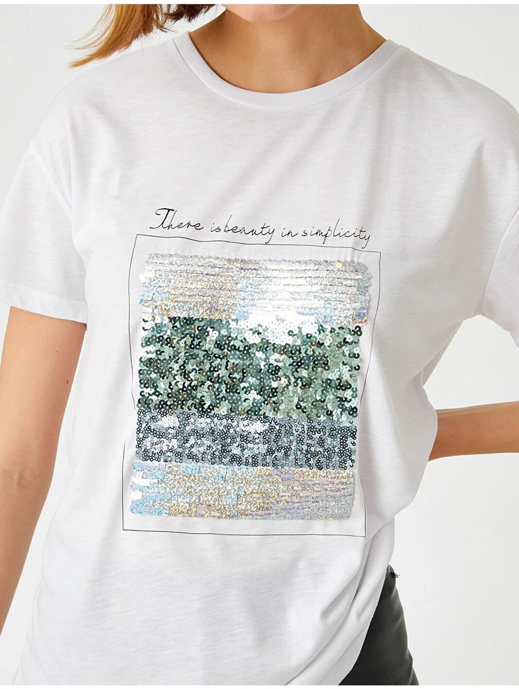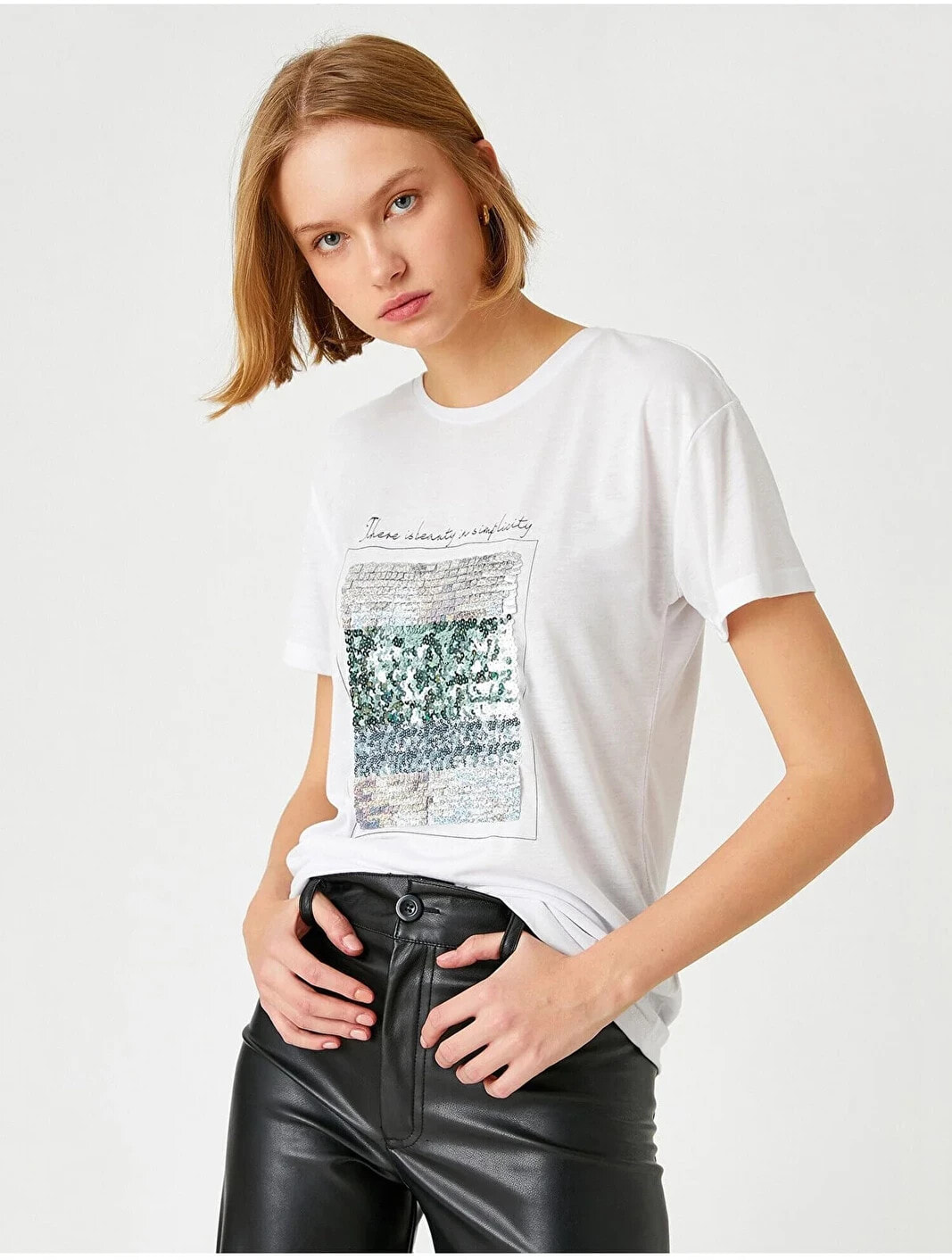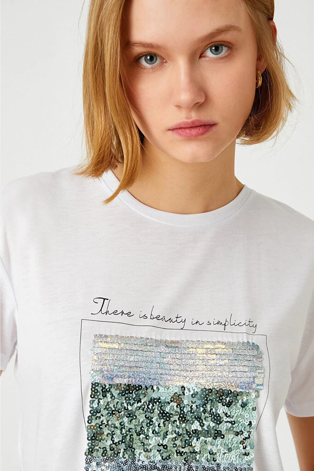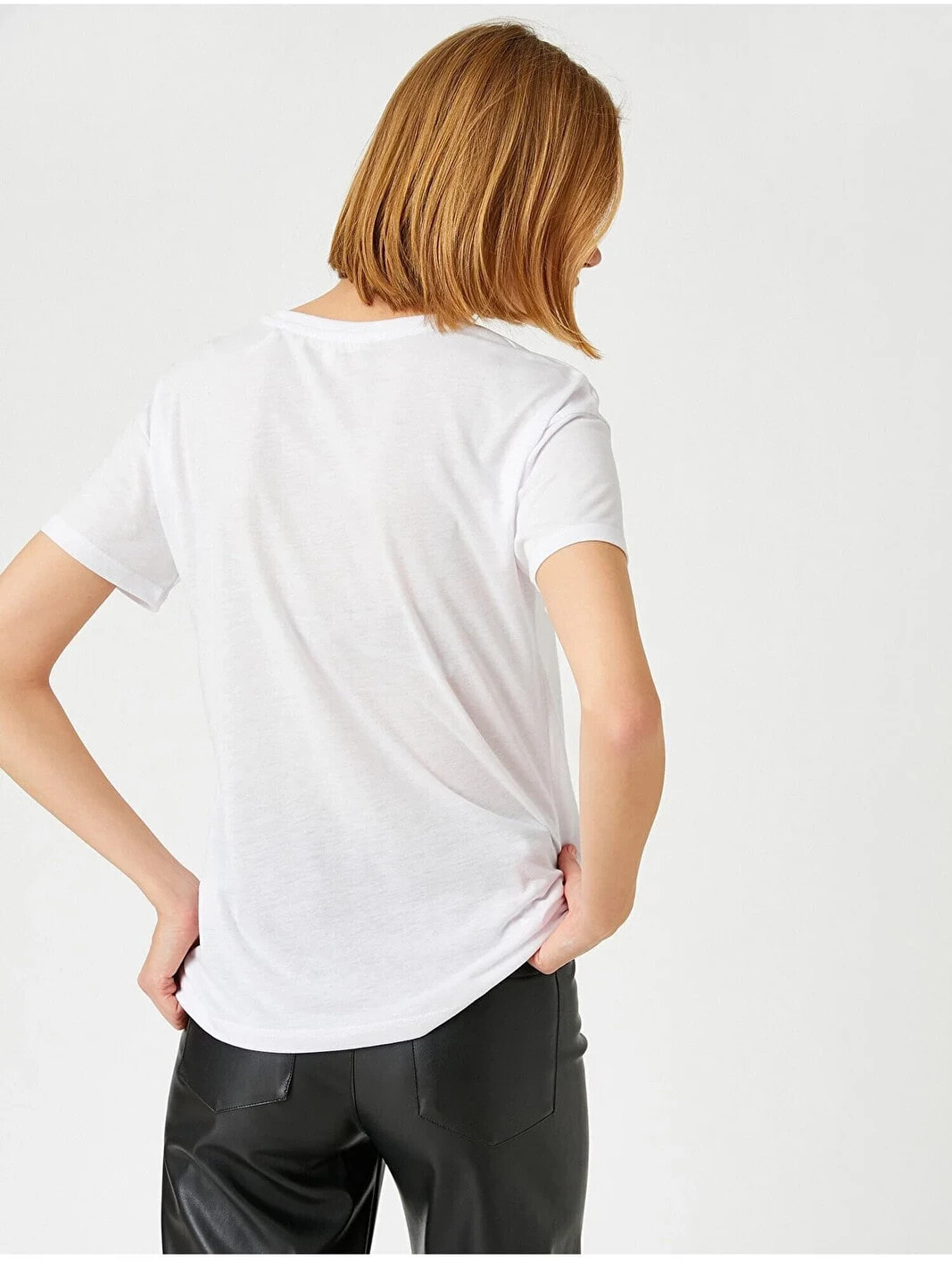 Pul Detaylı, Slogan Baskılı, Kısa Kollu, Bisiklet Yaka Tişört. Model Bilgileri: Boy:181 cm, Göğüs:84, Bel:61, Kalça:90, Modelin Bedeni:S