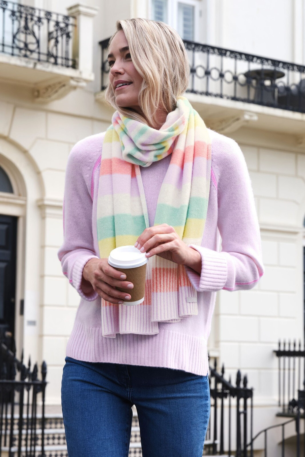Wrap yourself up warm in sumptuously soft cashmere and a timeless stripe design, instantly elevating any outfit.