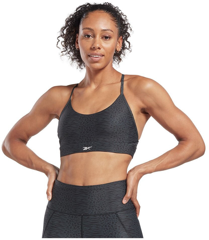 This Reebok sports bra helps you tackle any workout, from core class to the stationary bike.