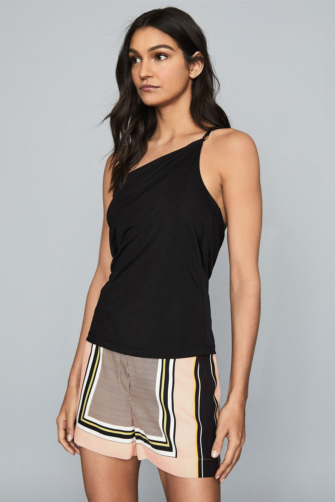 The Clea vest in black will make a sleek addition to your essentials collection. Crafted from lightweight jersey, it features a one-shoulder design with gold-tone detailing. Team it with denim and layer it under a leather jacket as you move from day to night.