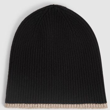 The Picton beanie is the perfect winter accessory. Made from warming, smooth wool in black, it’s arranged in fine ribs with a cuffed brim for a snug wear. Choose it to keep the cold at bay and remain stylish. Ribbed wool. Cuffed brim. Contrast stripe. The model is wearing a size S/M Measurements of model: 5ft 11.5″/ 181cm.