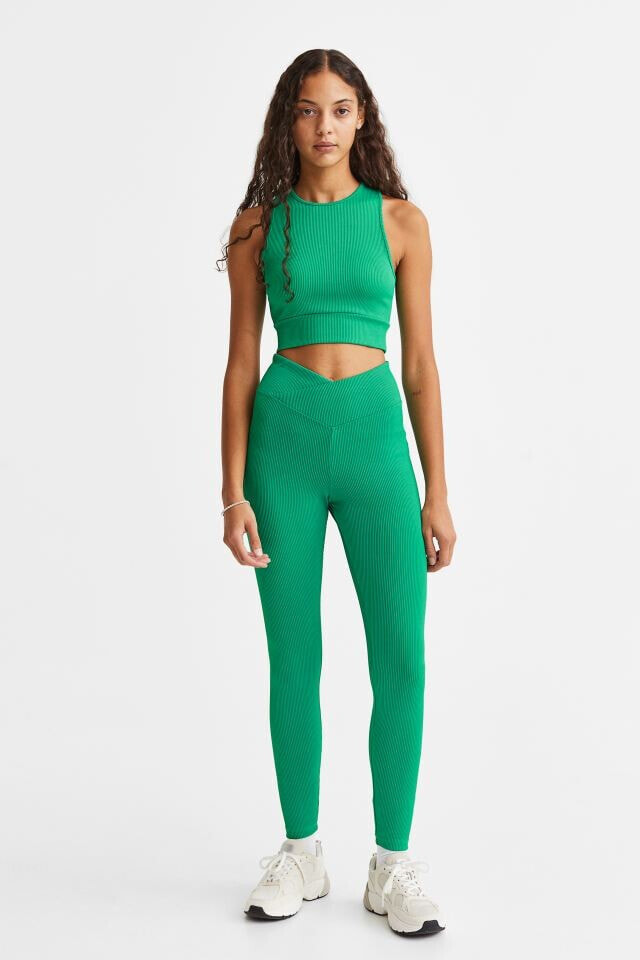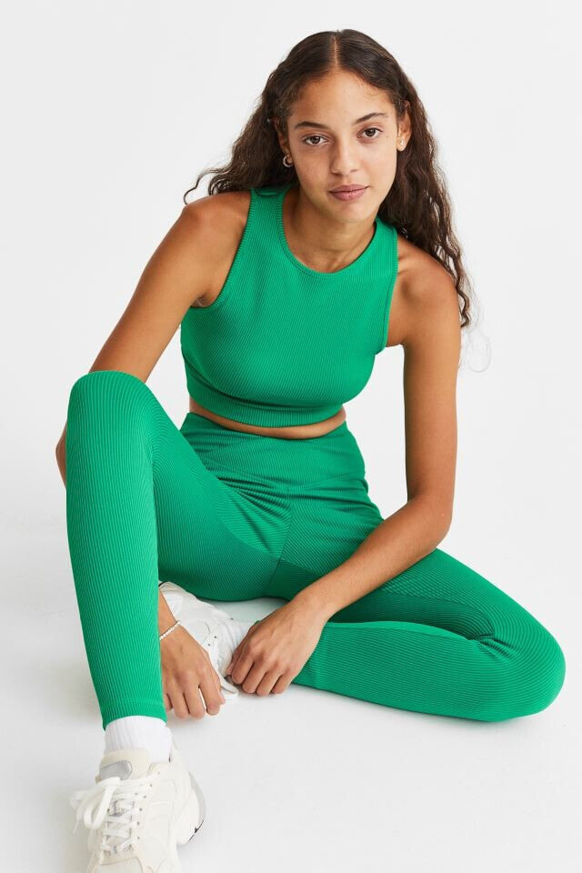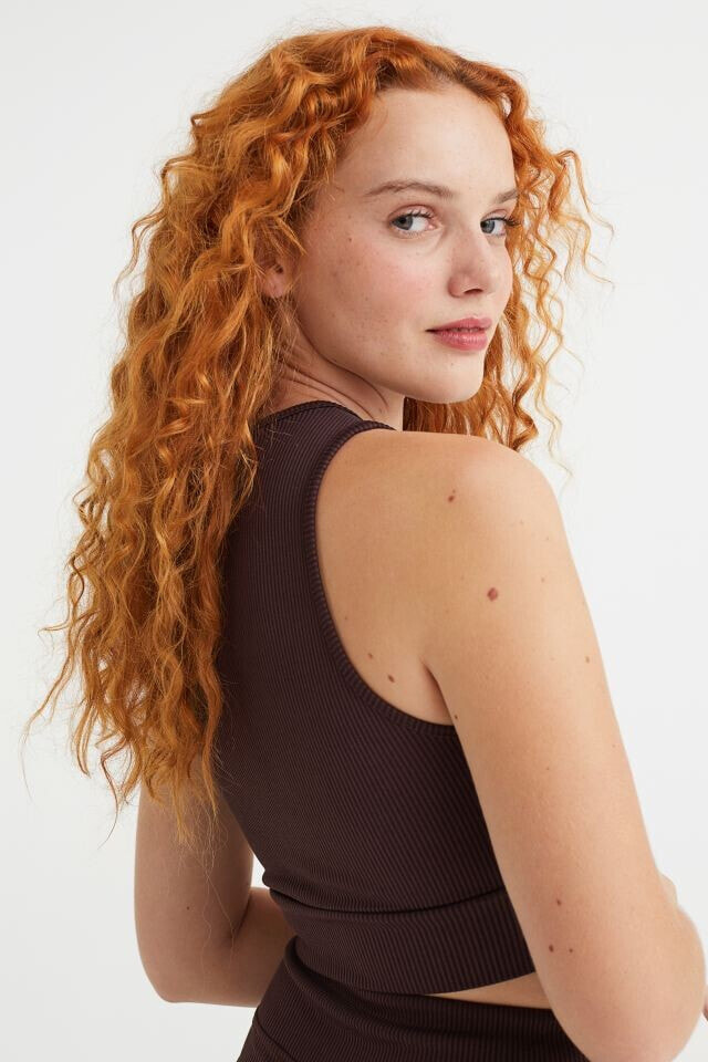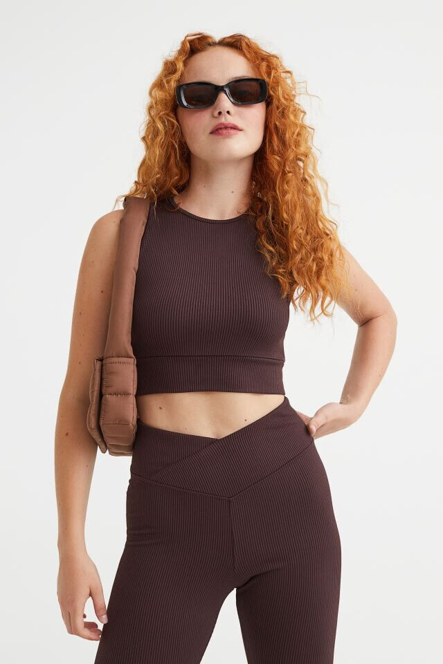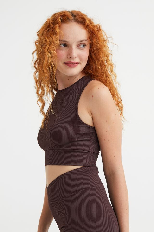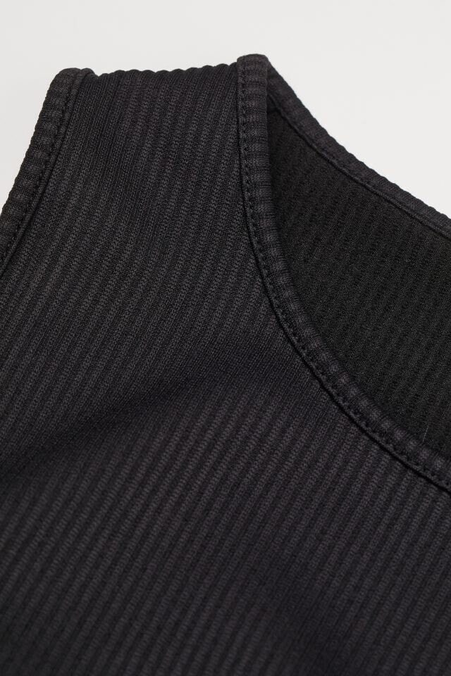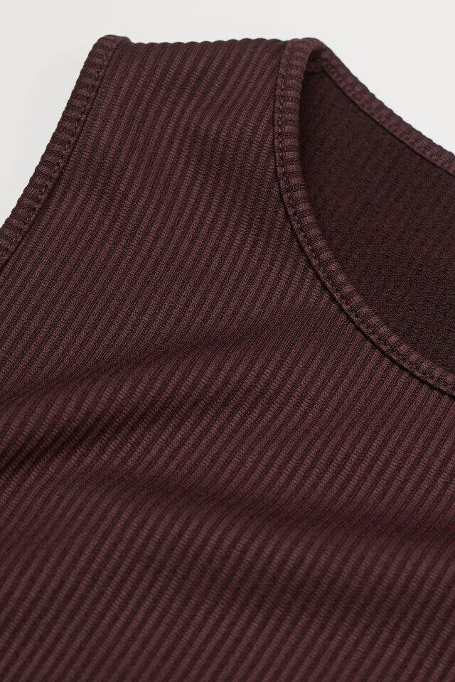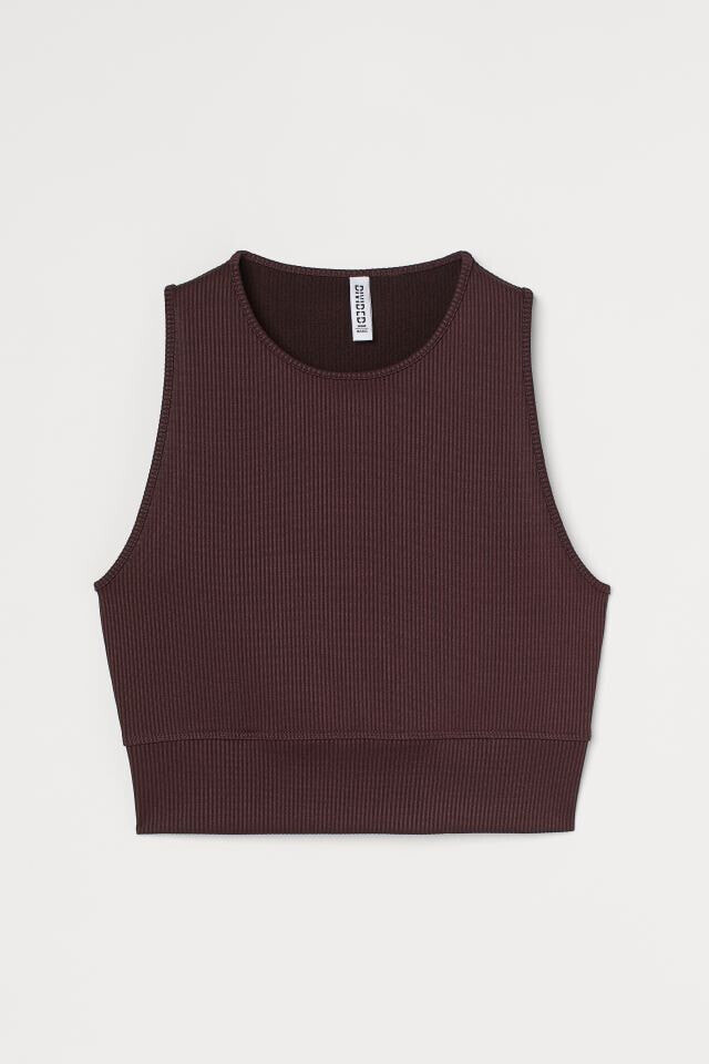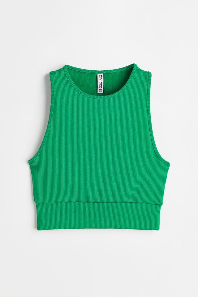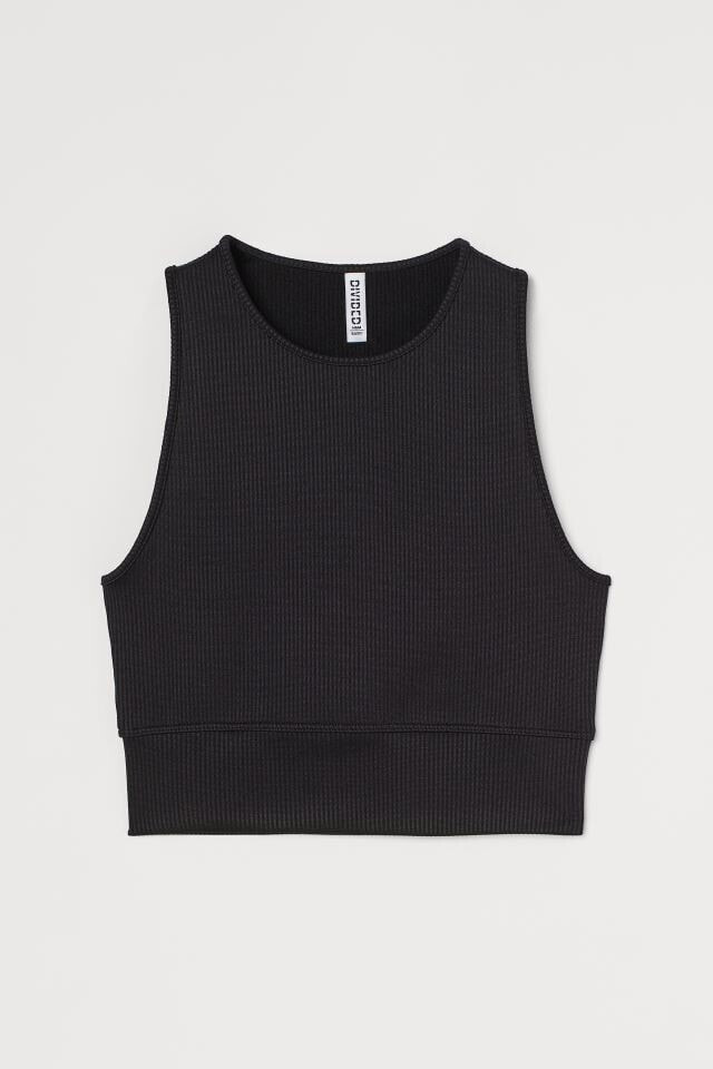 Fitted, sleeveless crop top in ribbed jersey. Round neckline and wide trim at hem.