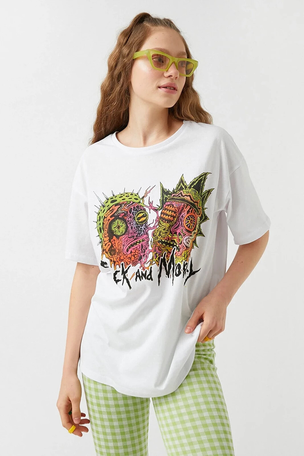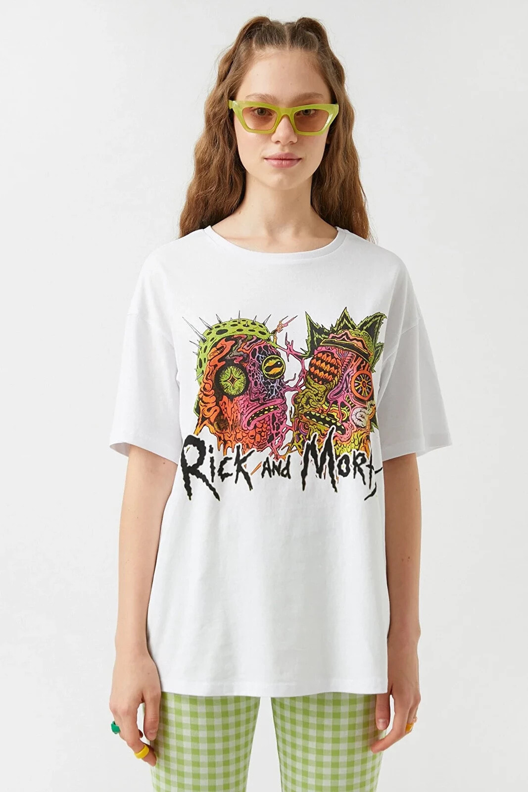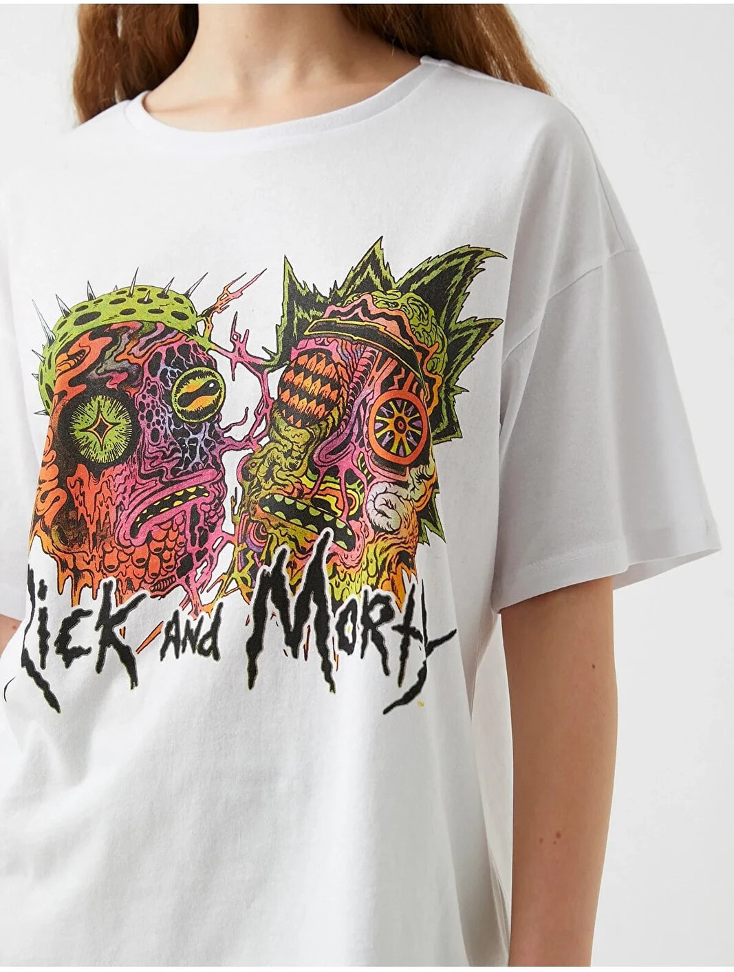 Rick and Morty lisanslı, bisiklet yaka, kısa kollu tişört.