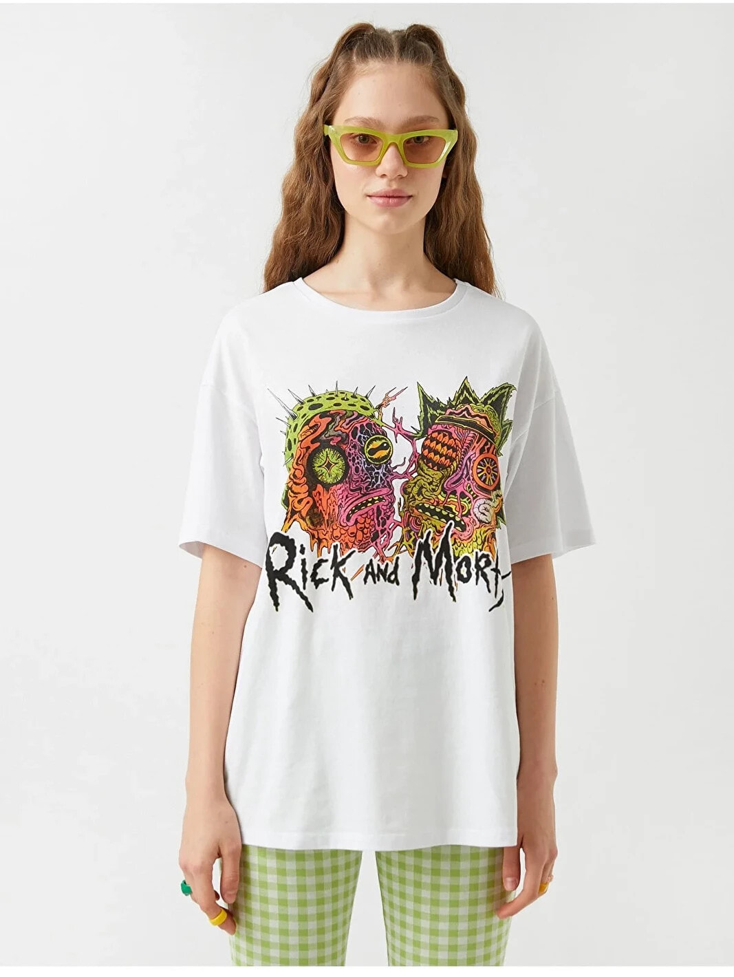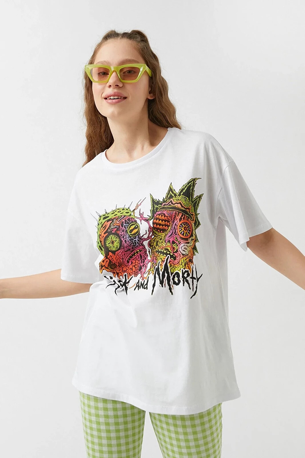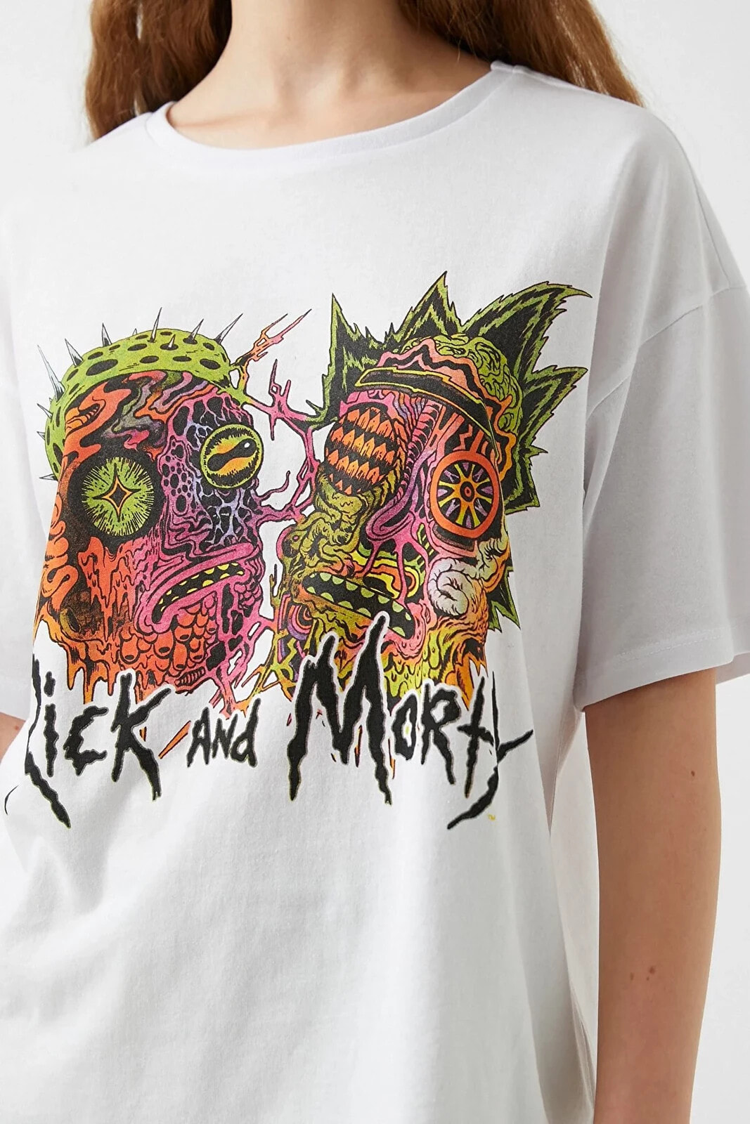 Rick and Morty lisanslı, bisiklet yaka, kısa kollu tişört.