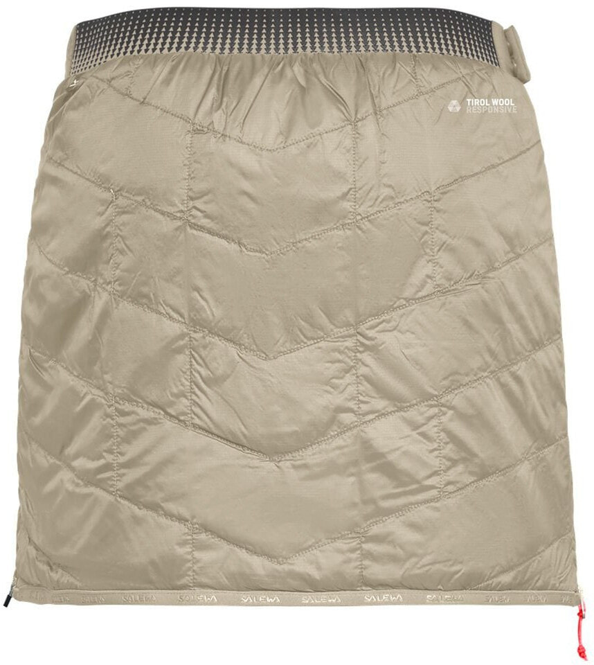 The Sesvenna TirolWool Responsive Skirt is a windproof and water-repellent additional insulation layer for activities such as ski mountaineering and ski touring. Its lightweight, yet durable Durastretch and ripstop nylon outer fabrics are rugged enough for alpine use and have a DWR (durable water repellent) finish. Developed together with leading mountain guides’ organisations in the Alps, TirolWool® Responsive uses wool sourced from Tirolean mountain sheep – the mountain environment produces a wool with higher insulation properties. Thanks to a special Oxy-wash treatment the wool is soft, odourless and breathable. We blend the wool with polyester fibres, enhanced with thermo-reactive Responsive minerals that recycle far infrared energy back to the body to stimulate the blood & oxygen flow, benefitting performance and recovery. As a result, it keeps you warmer for longer. The Sesvenna TirolWool® Responsive Skirt really is the ideal extra layer for colder conditions and it will help keep your body core and upper legs warm even when wet. The zippered side opening ensures a rapid on and off motion and the flat waist has a practical side button fastener. It packs down small into its own inside pocket to disappear in your pack when not in use.