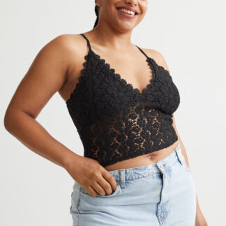 Fitted, corset-style crop top in softly draped, double-layered satin. Draped neckline, adjustable, extra-narrow shoulder straps, and boning at front. Concealed zipper at one side and gently rounded hem at front.