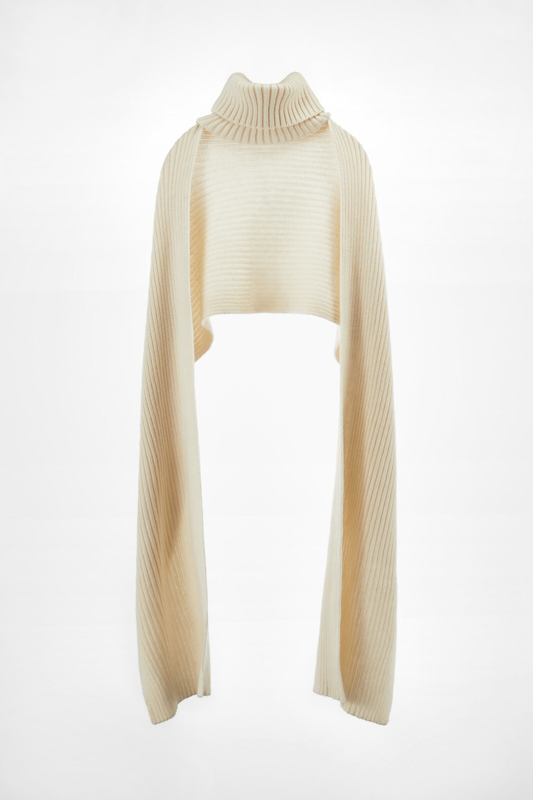 Шарф из смесовой шерстяной пряжи с высоким воротником.