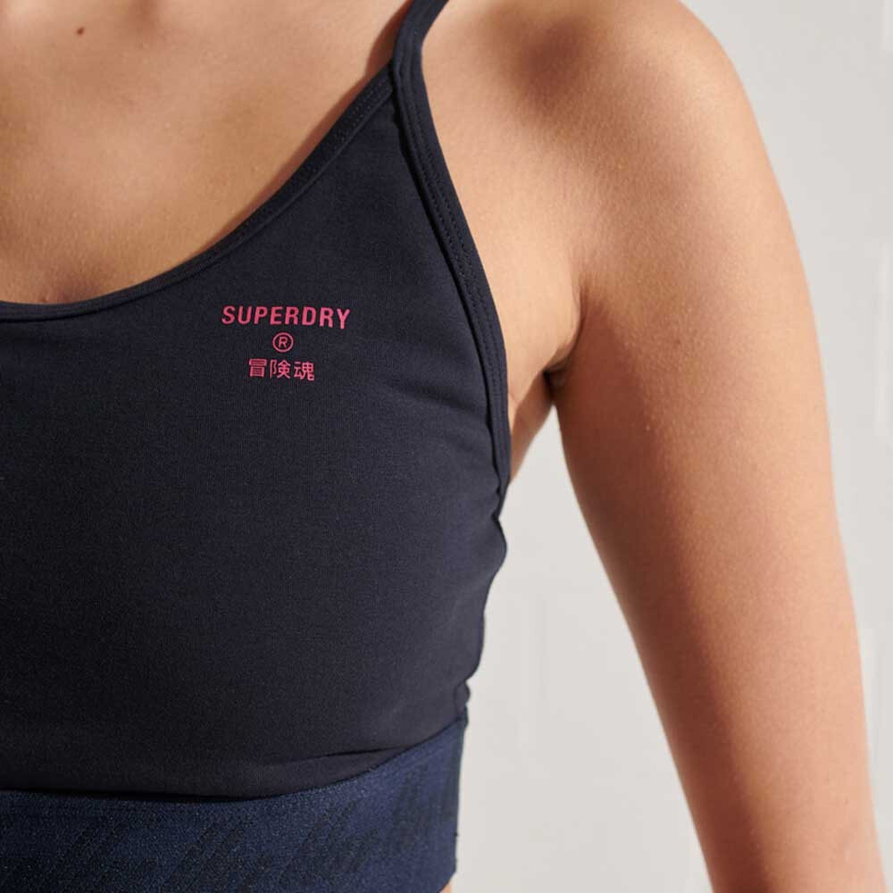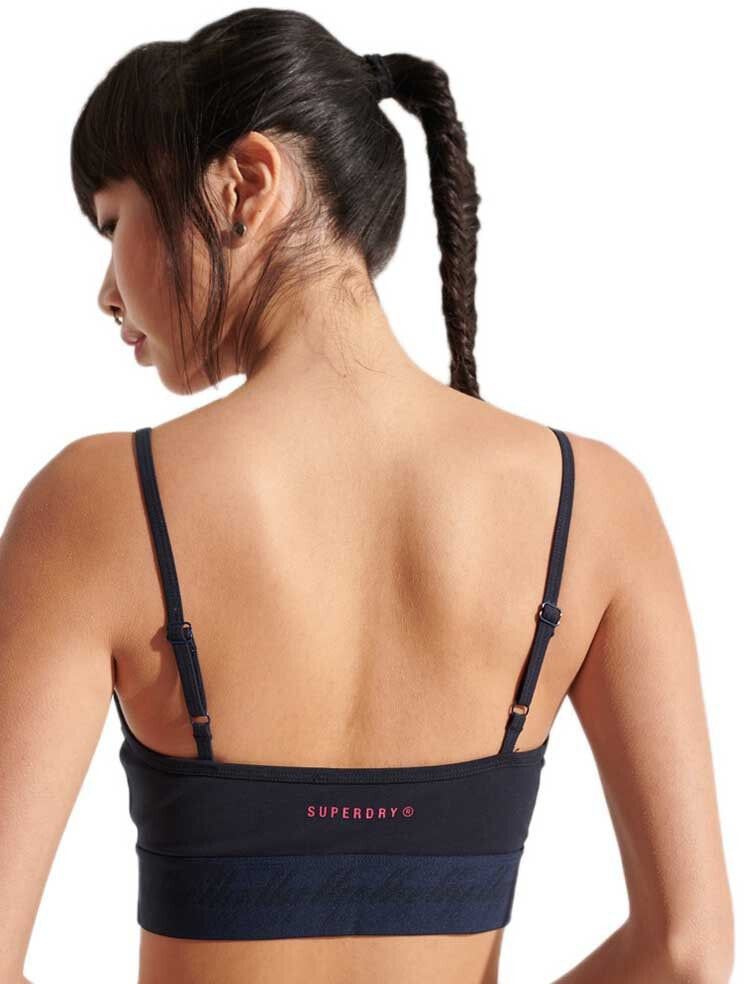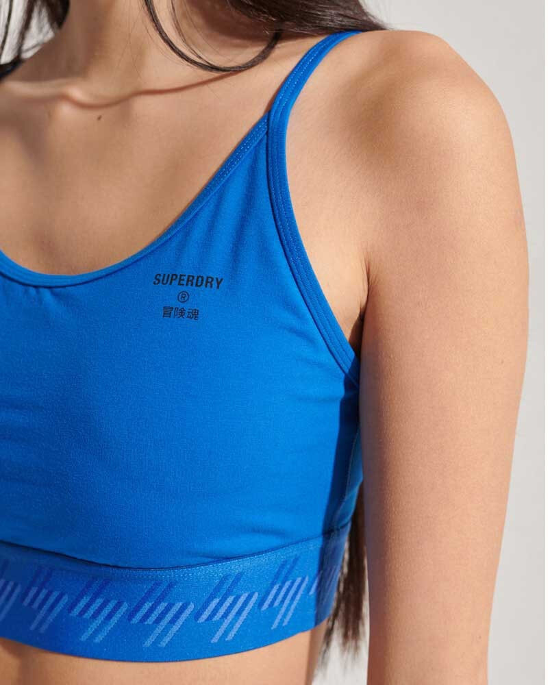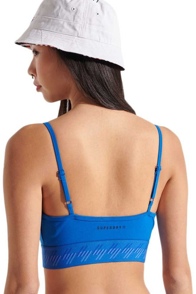 Stay on trend this season and style our Essential Strappy Bra as a cute crop top. Featuring adjustable straps, emalsticated hem, slight padding and printed branding.