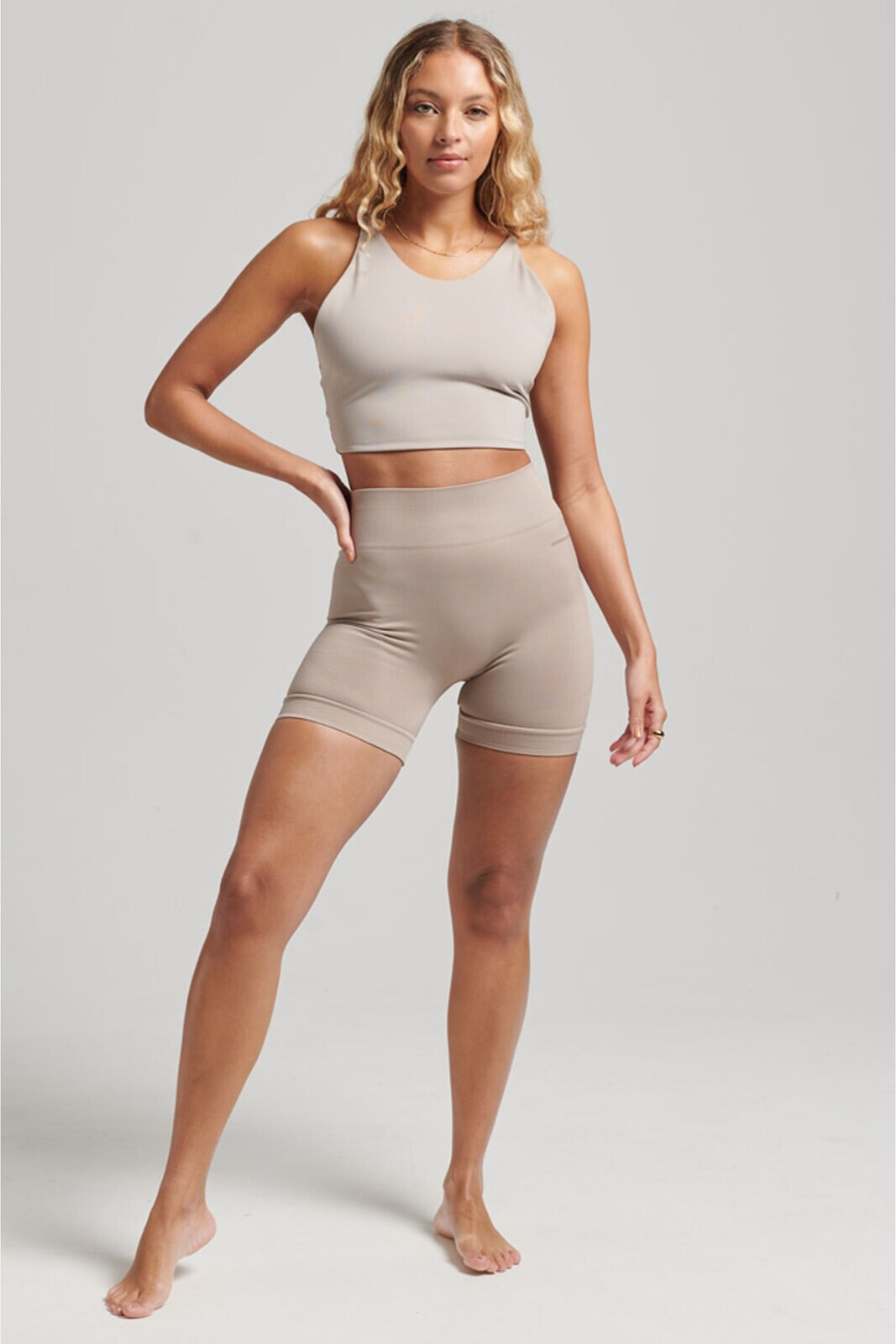 Bend and stretch effortlessly in our core seamless tight shorts. Our stretchy seamless material allows you to move freely, going on a jog or practising your yoga pose you will feel and look your best. Fitted: A body sculpting fit, tight to the body. Features high-waisted rib knit waist, tight jacquard knit pattern and rubberised signature logo. Breathable fabric Allows air and moisture to pass through the material to help keep you comfortable. Moisture-wicking Helps to regulate your body temperature by drawing perspiration away from the body and allowing moisture to disperse from the outer face of the fabric.