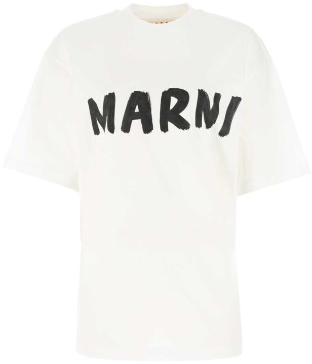 Cotton T-shirt by Marni, ribbed crew neck, iconic brand monogram printed in contrast on front, oversize fit.