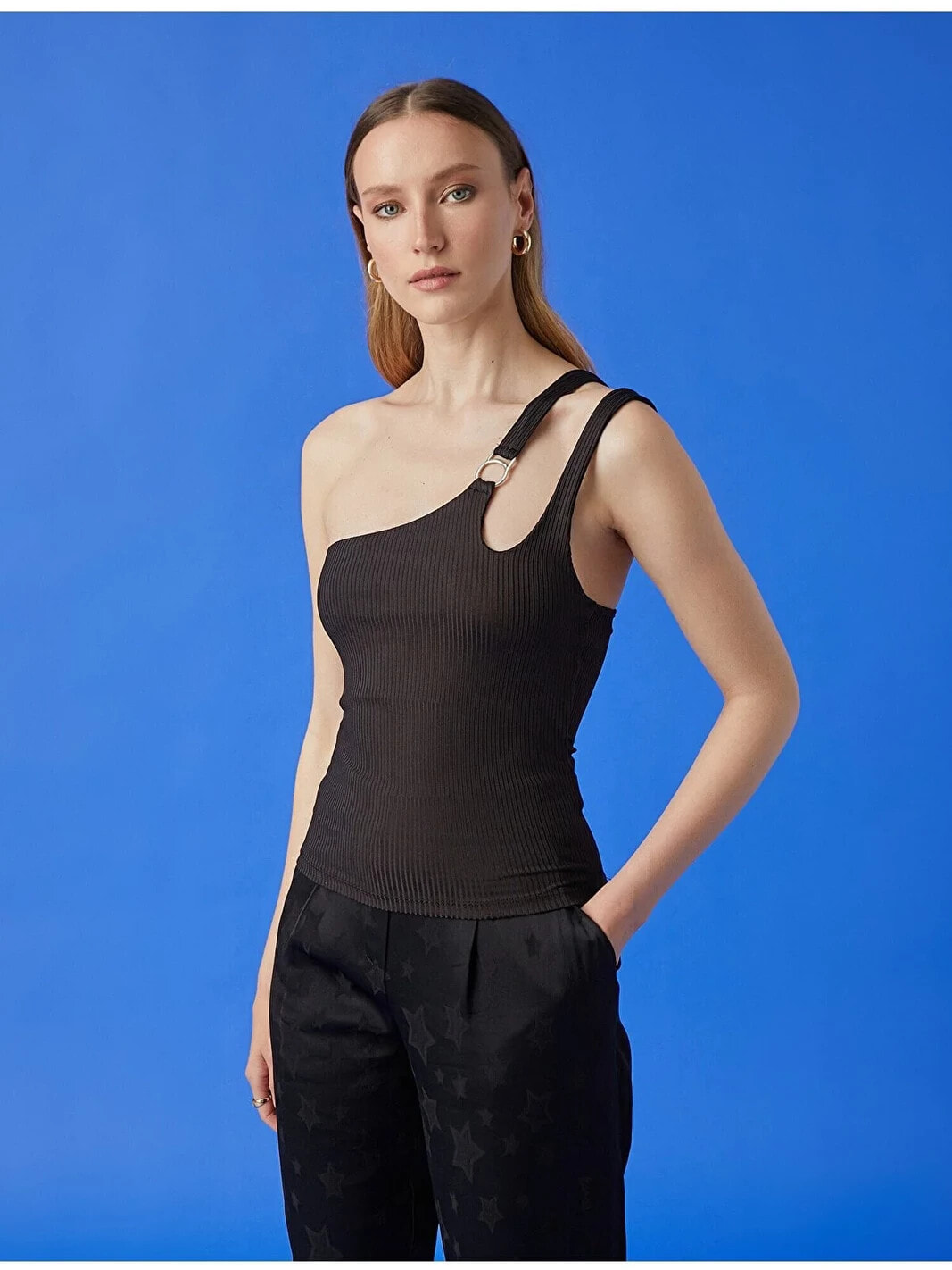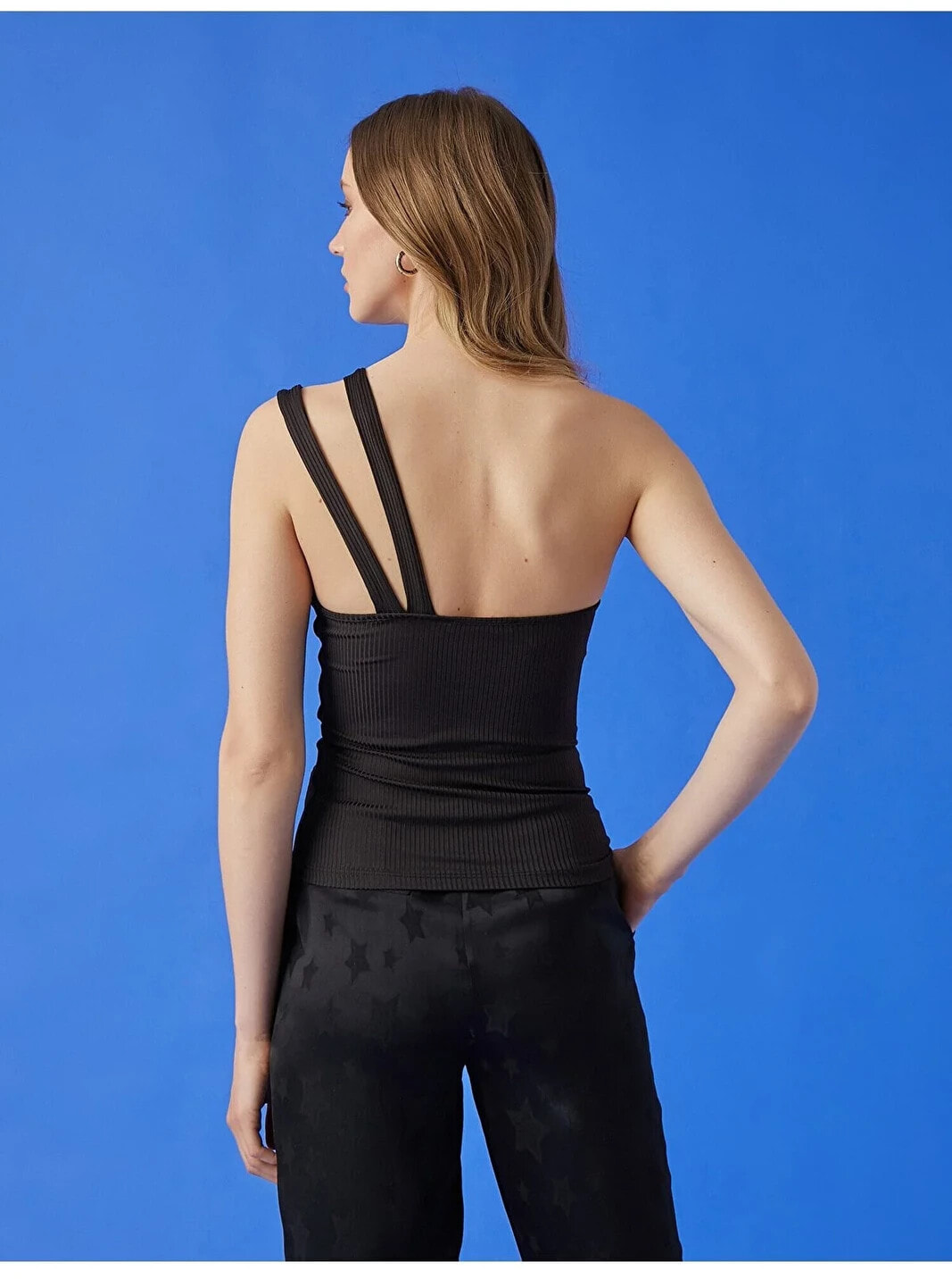 Tek Omuz Pencere Detaylı Atlet Model Bilgileri: Boy:178 cm, Göğüs:84, Bel:67, Kalça:94, Modelin Bedeni:S
