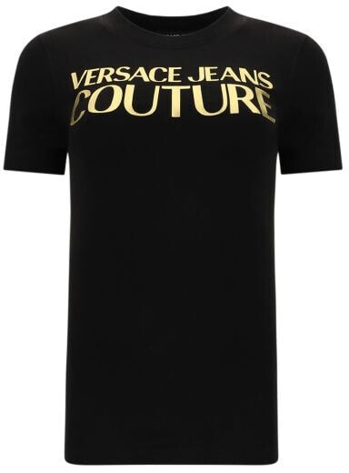 Cotton Thick Foil T-Shirt by Versace Jeans Couture, ribbed crew neck, contrasting iconic brand monogram on the front, slim fit.