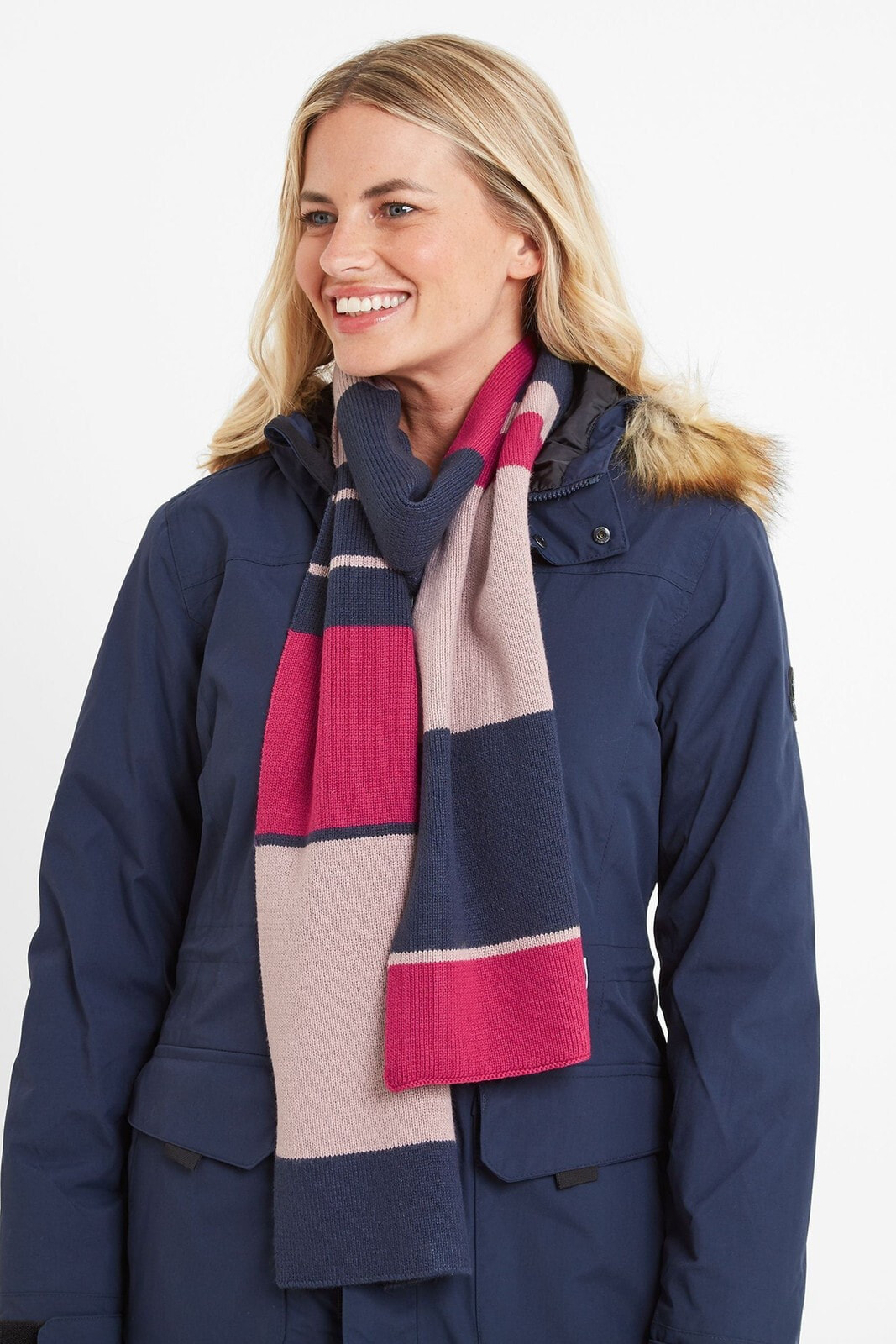 Wrap up warm in our Brington scarf this winter. Knitted in a bold colour block pattern to brighten up any windswept winter walk, this comfy scarf will keep your neck snug when it’s cold outside. Perfect when you need an extra layer of warmth, or giving as a gift for any occasion, this super soft and cosy scarf has it all covered. The finishing touch is our signature rose emblem woven label at one end.
