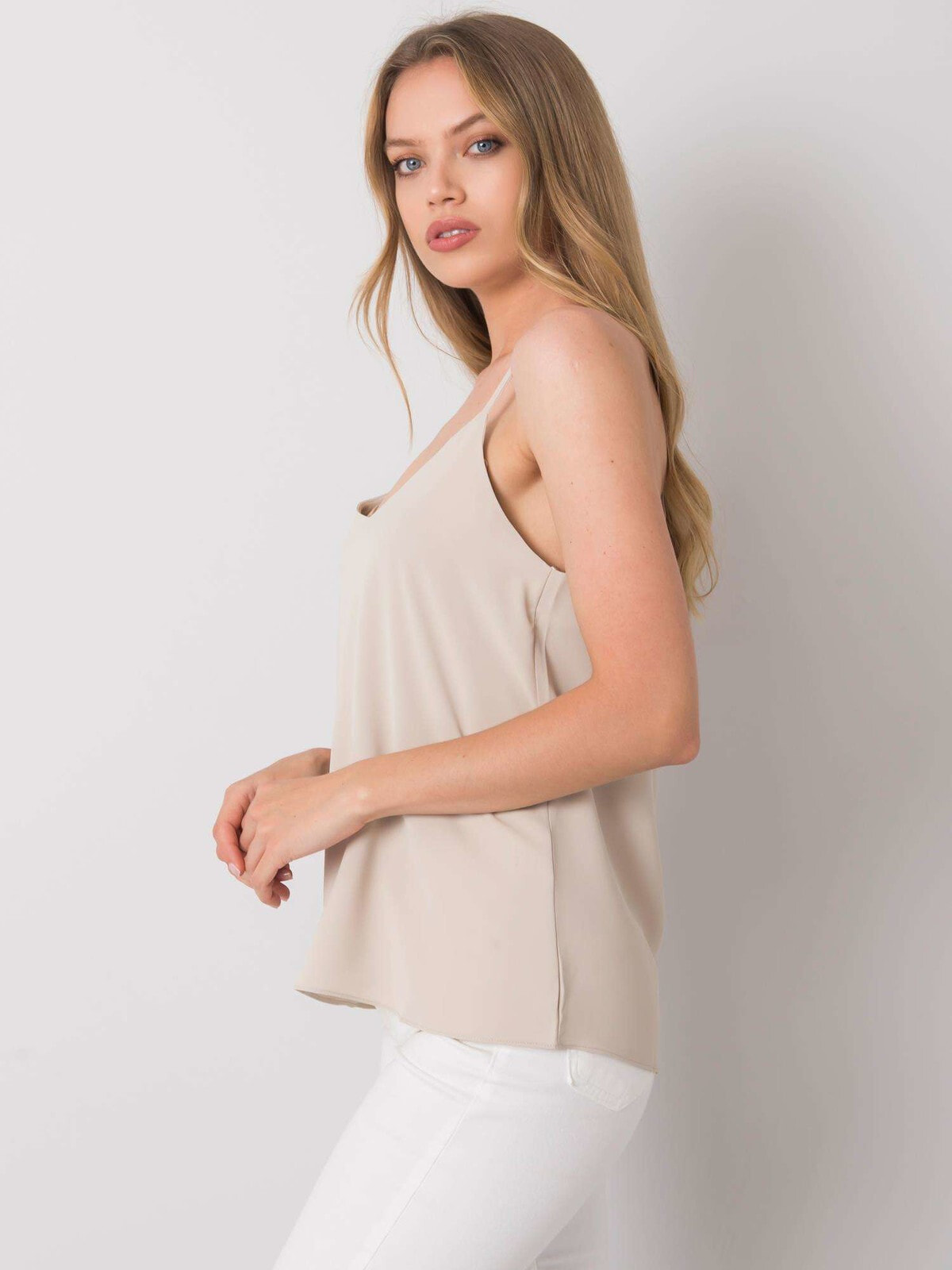 Miętowy top na ramiączkach.