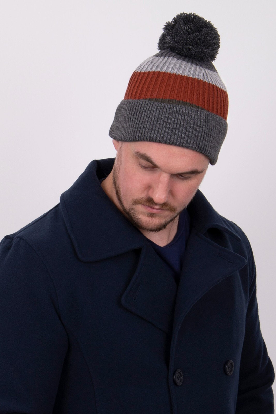A stylish beanie hat with block strip design, keeping you looking stylish and warm with the season finished with pom pom detailing.