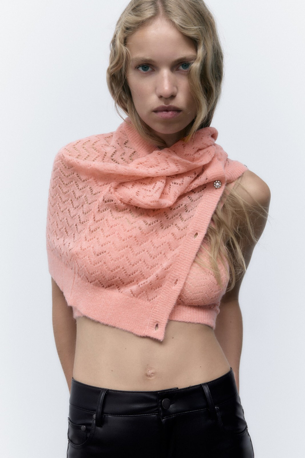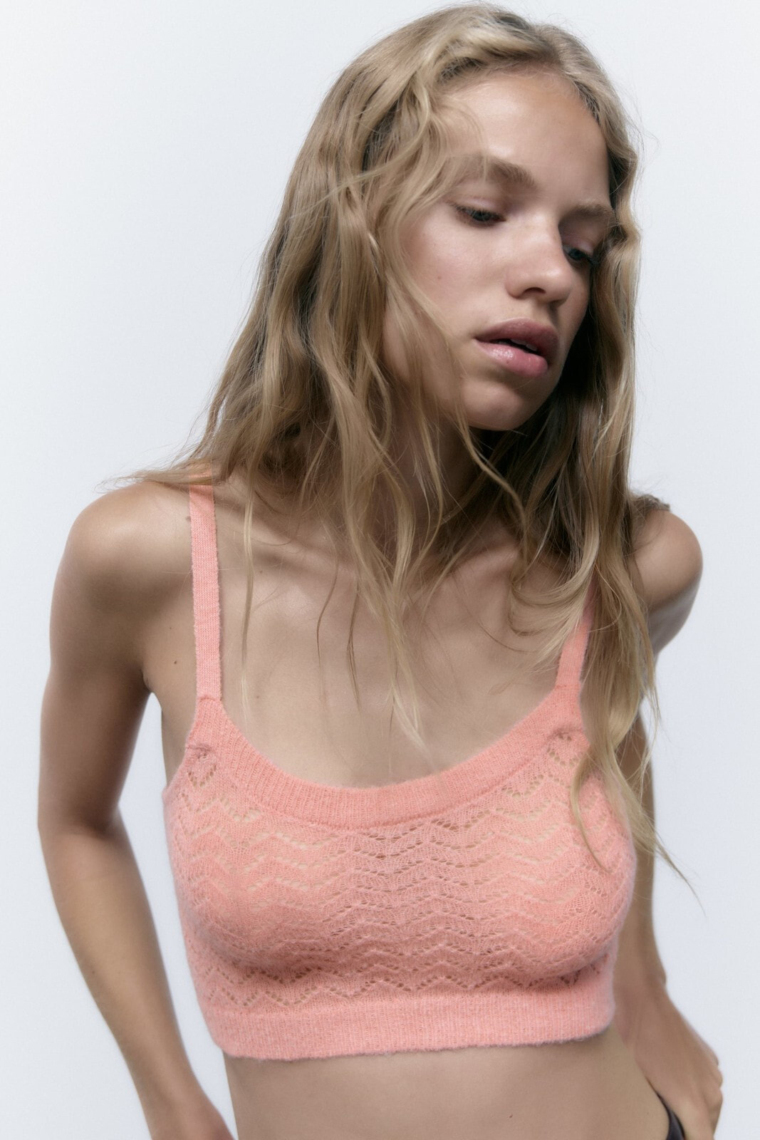 Кроп-топ с квадратным вырезом и тонкими бретелями.