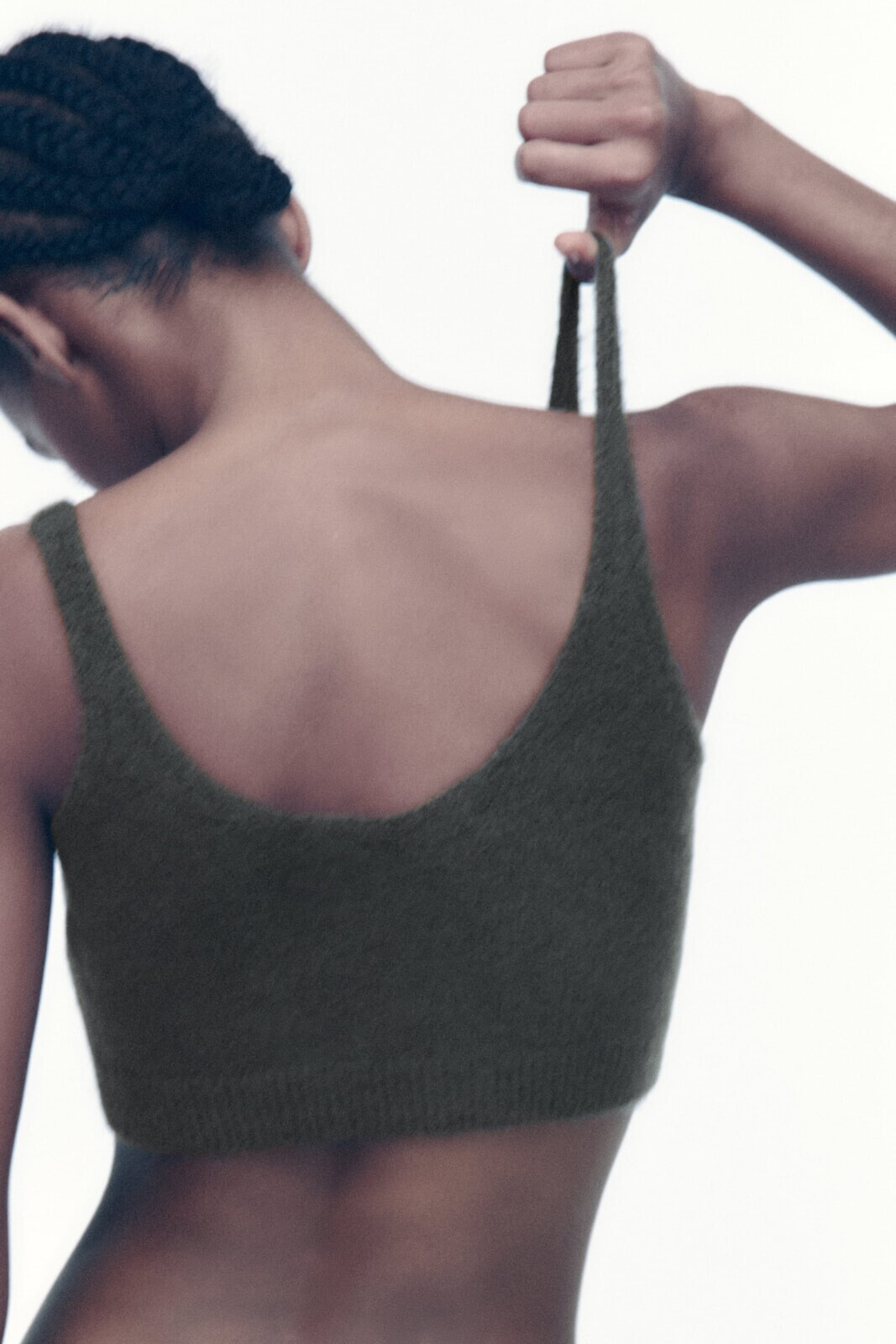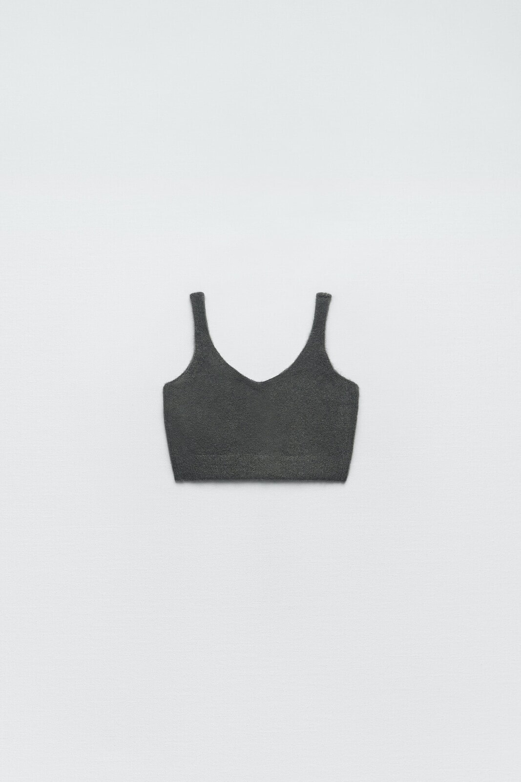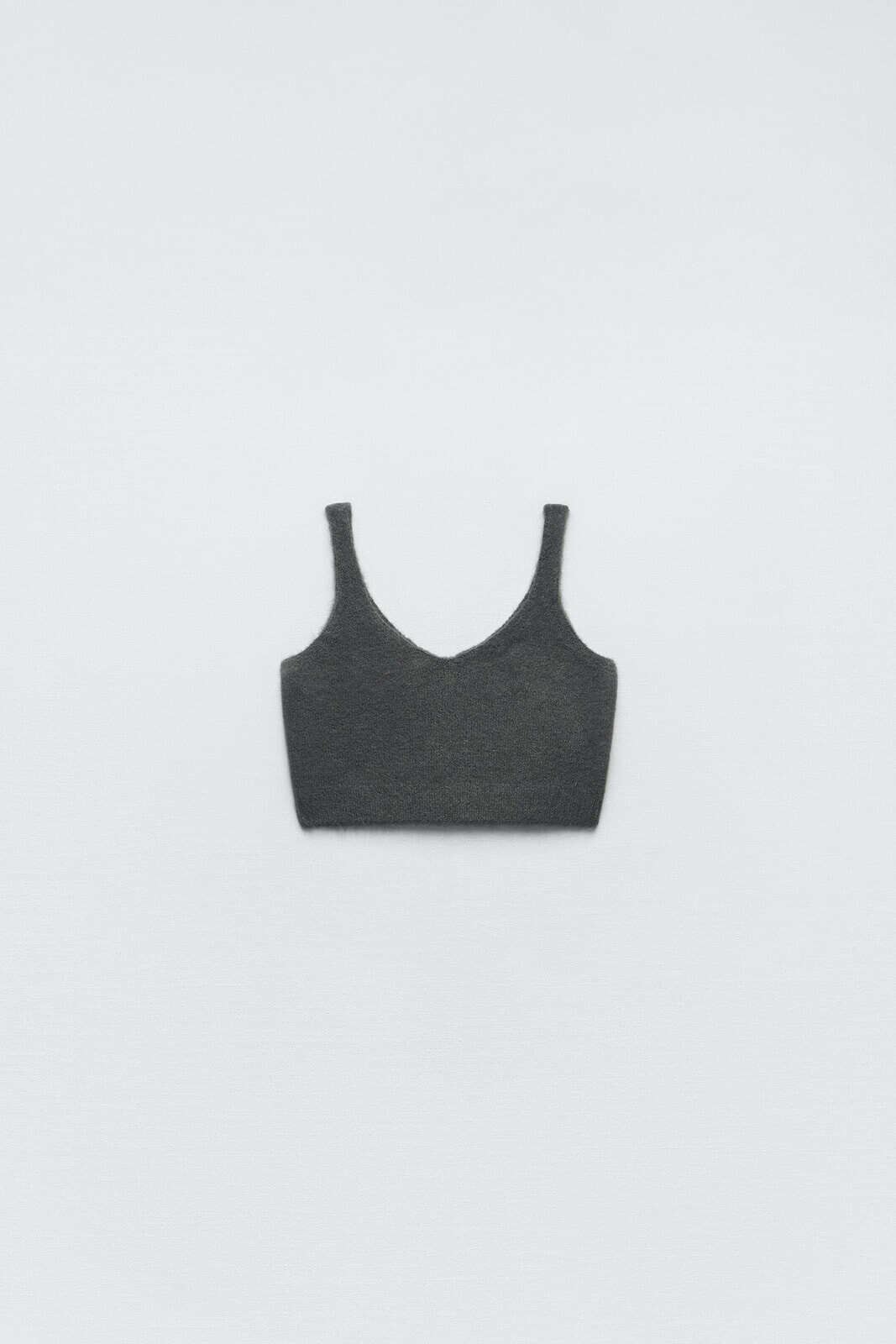 Укороченный топ с V-образным вырезом и тонкими бретелями.