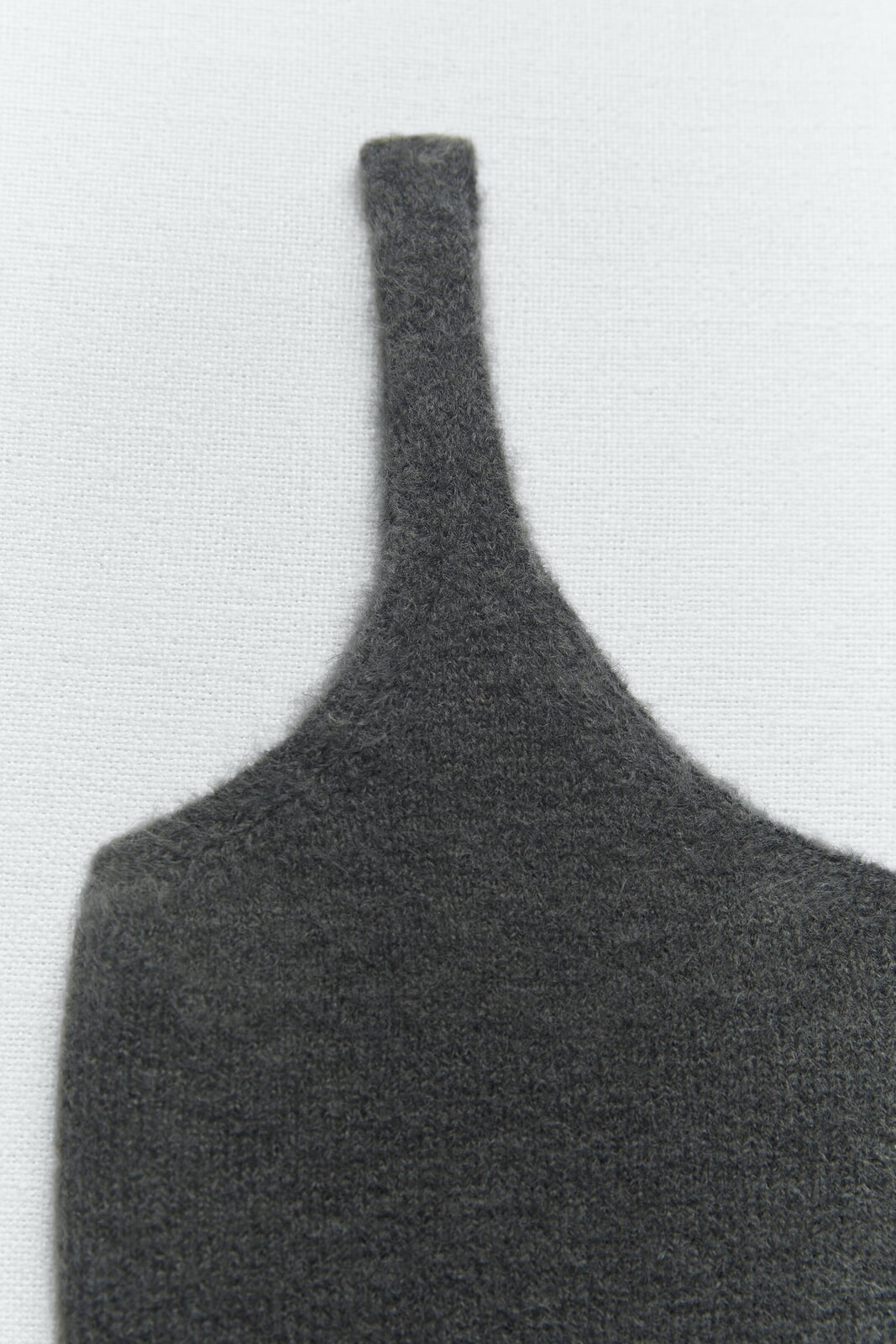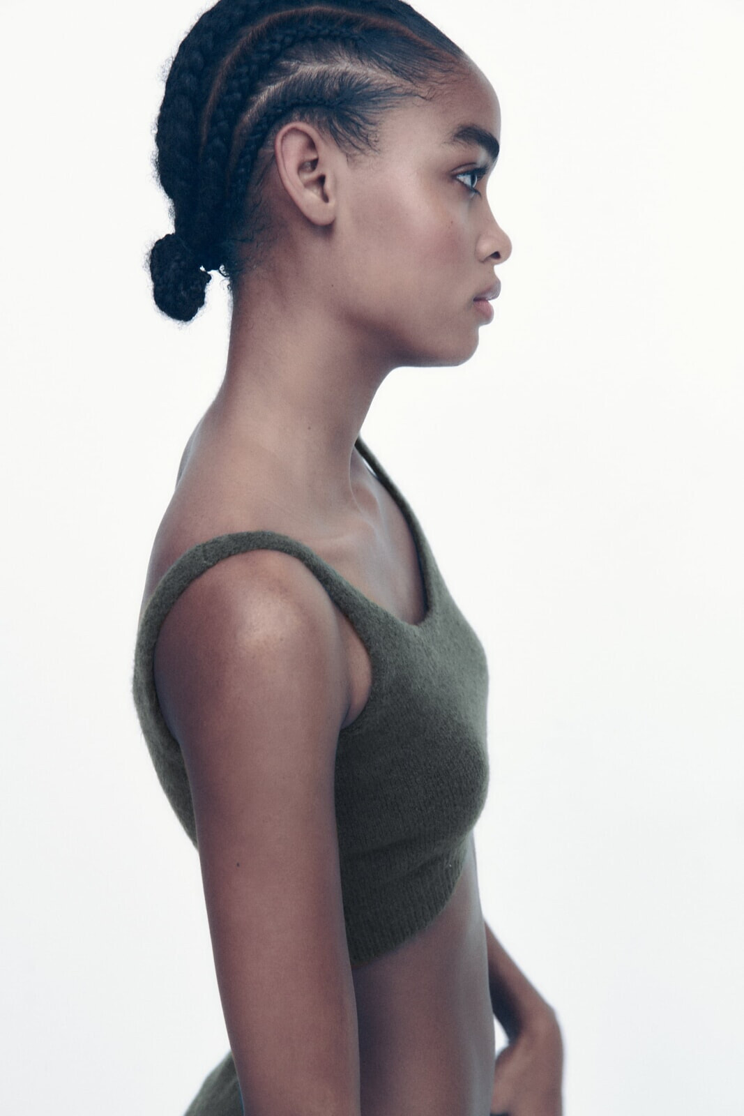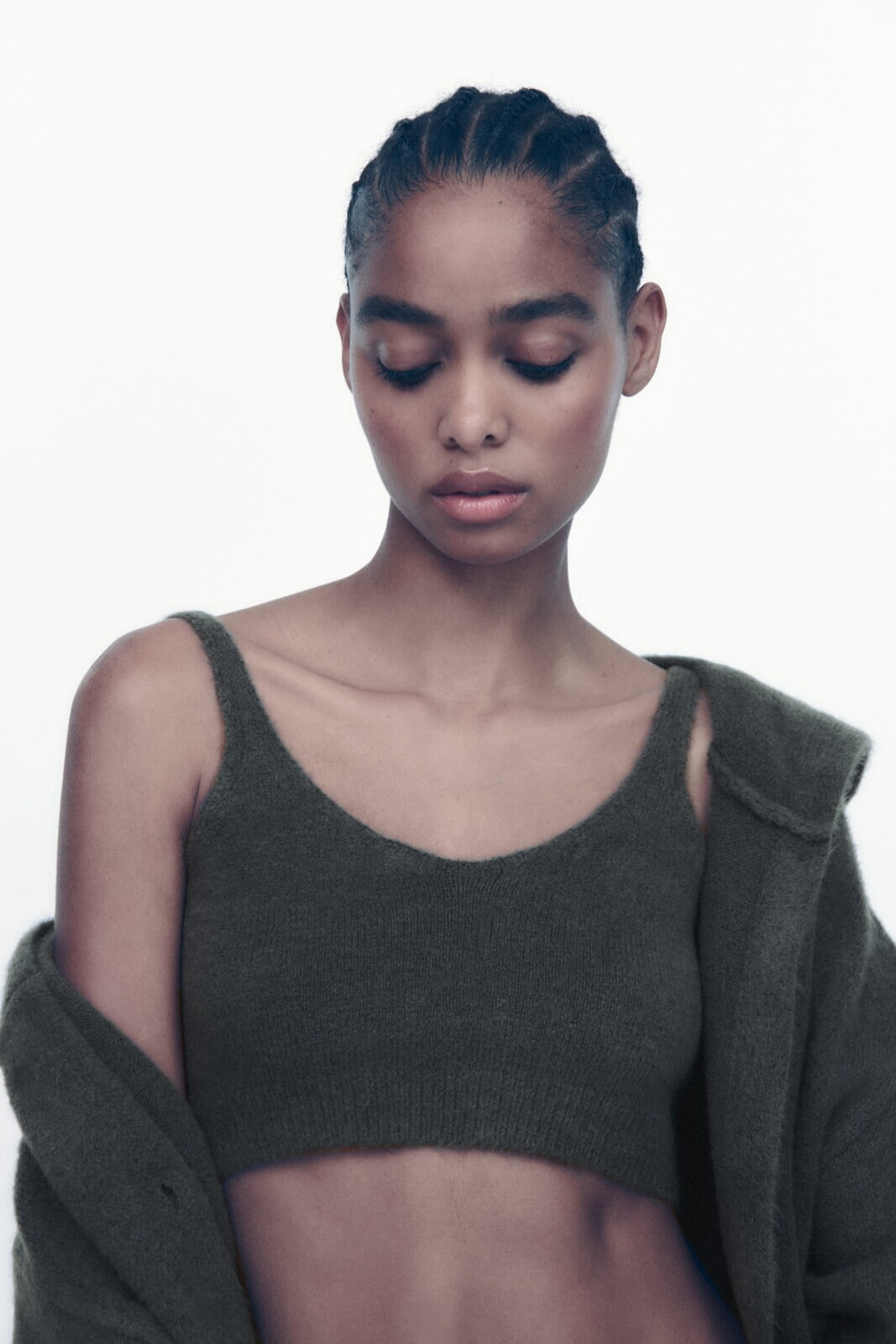 Укороченный топ с V-образным вырезом и тонкими бретелями.