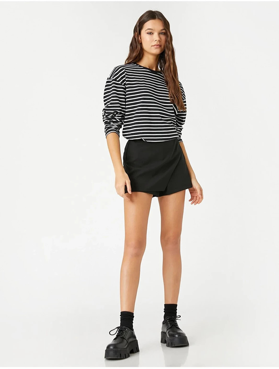 Koşturmacalı, yoğun günlerin kurtarıcısı bisiklet yaka, uzun kollu tişört