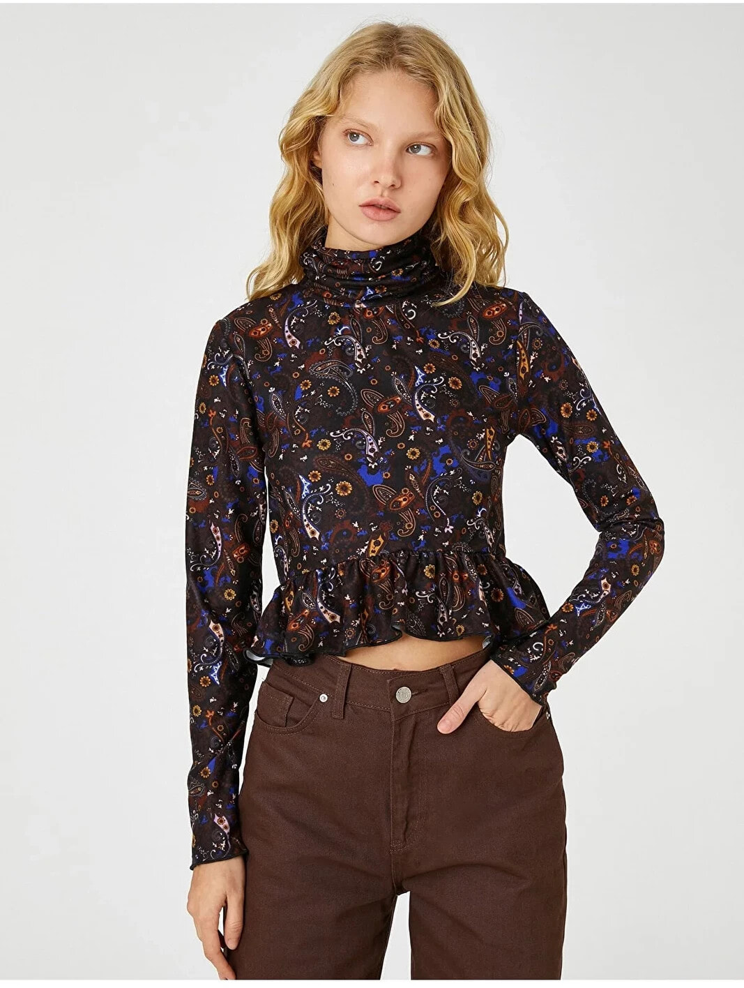 Tişört modasında trendleri yakalamayı ertelemeyin! Uzun kollu, metal aksesuarlı, pencere detaylı tişörtü kot pantolonlarınızla veya mini eteklerinizle kombinleyebilirsiniz.