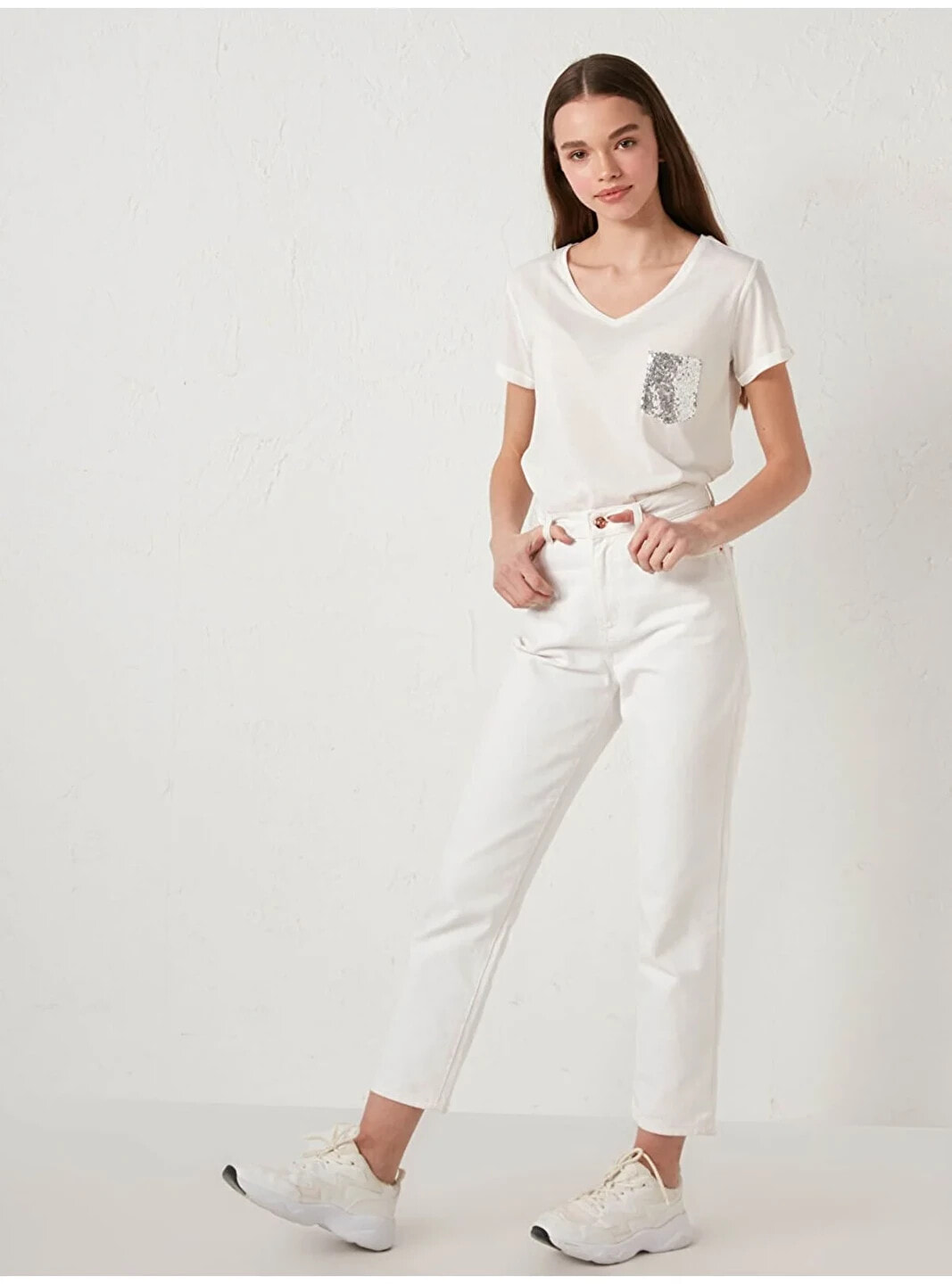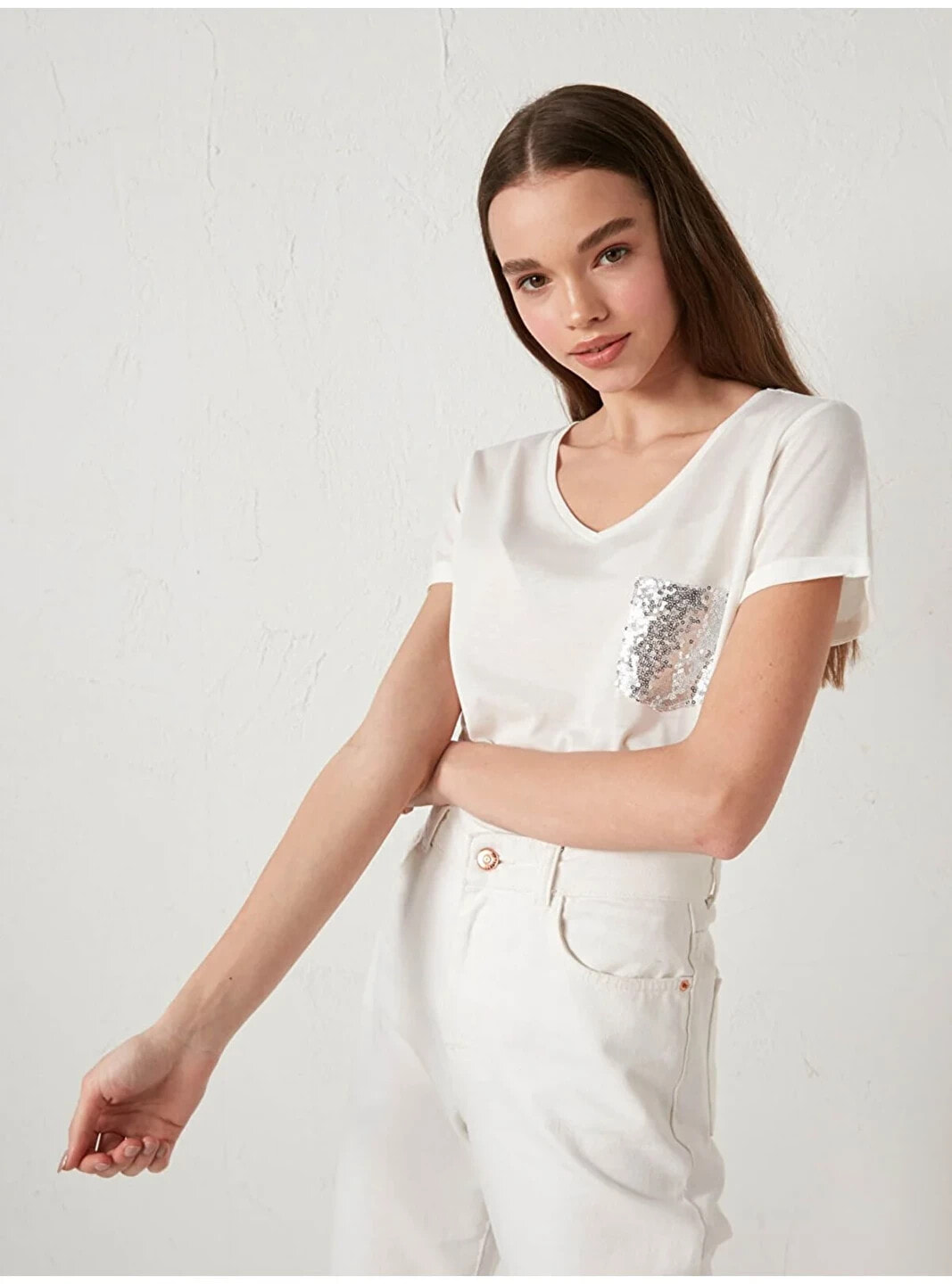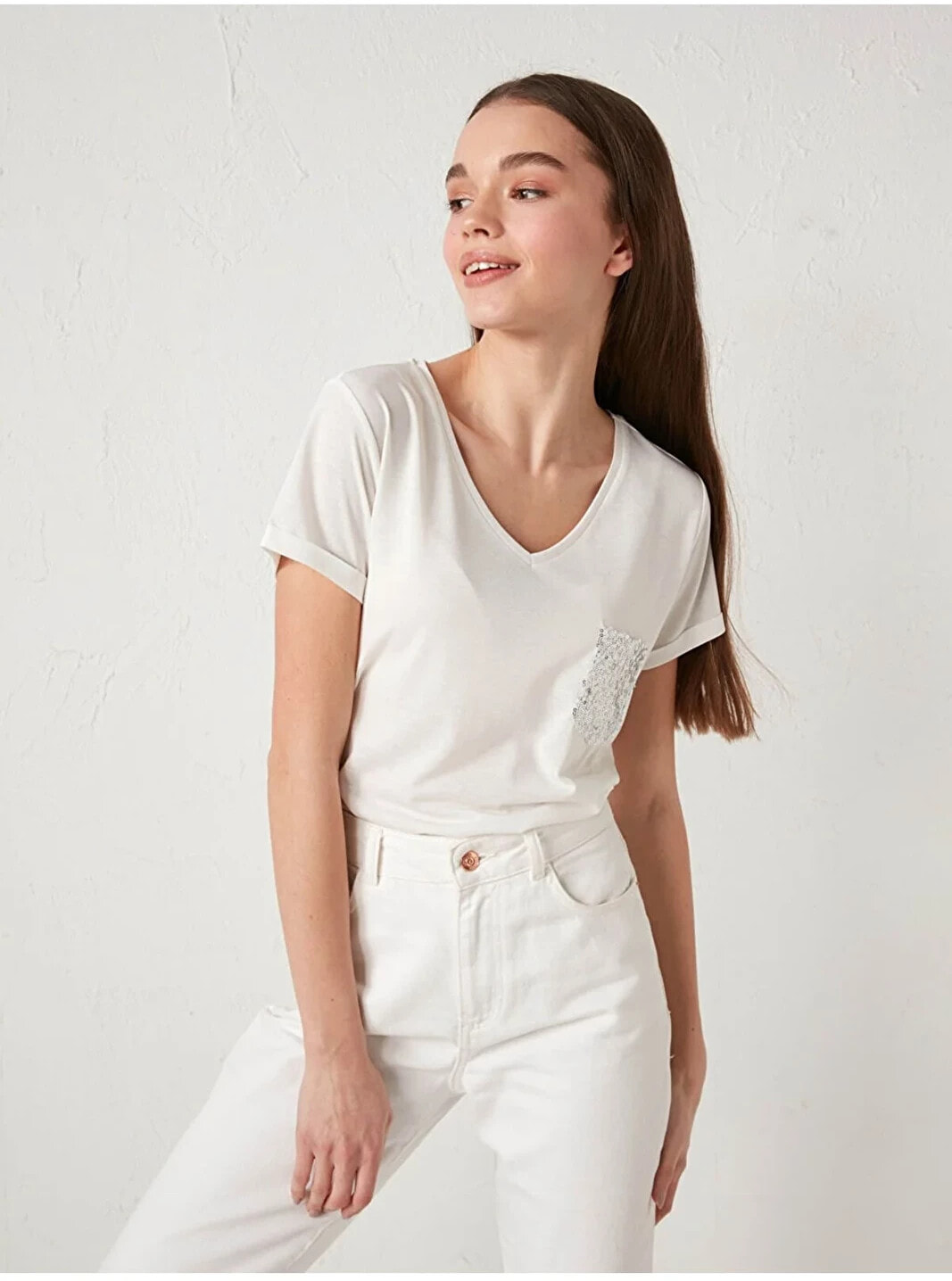 Manken Bilgisi Göğüs: 93 cm Bel: 71 cm Basen: 105 cm Boy: 177 cm Manken XL beden ürün giyiyor. Ürün İçeriği ve Özellikleri Ürün İçeriği: Ana Kumaş: %65 Polyester %35 VİSKOZ Ürün Özellikleri: Marka: LCW Casual Kalıp: Standart Kalınlık: İnce Kapüşon Detay: Kapüşonsuz Ürün Tip: Tişört Yaka: V Yaka Kol Boyu: Kısa Kol Desen: Düz Uzunluk: Standart Kumaş: Penye Cinsiyet: Kadın