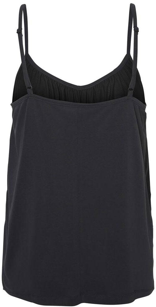 – Top with adjustable spaghetti shoulder straps. The top looks great with a denim bottom.