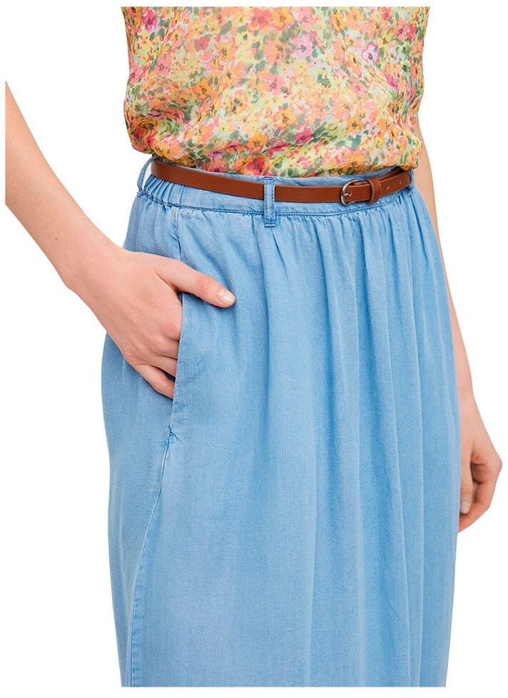 Maxi skirt with a belt in the waist, side pockets, and elastic at the back of the waist.