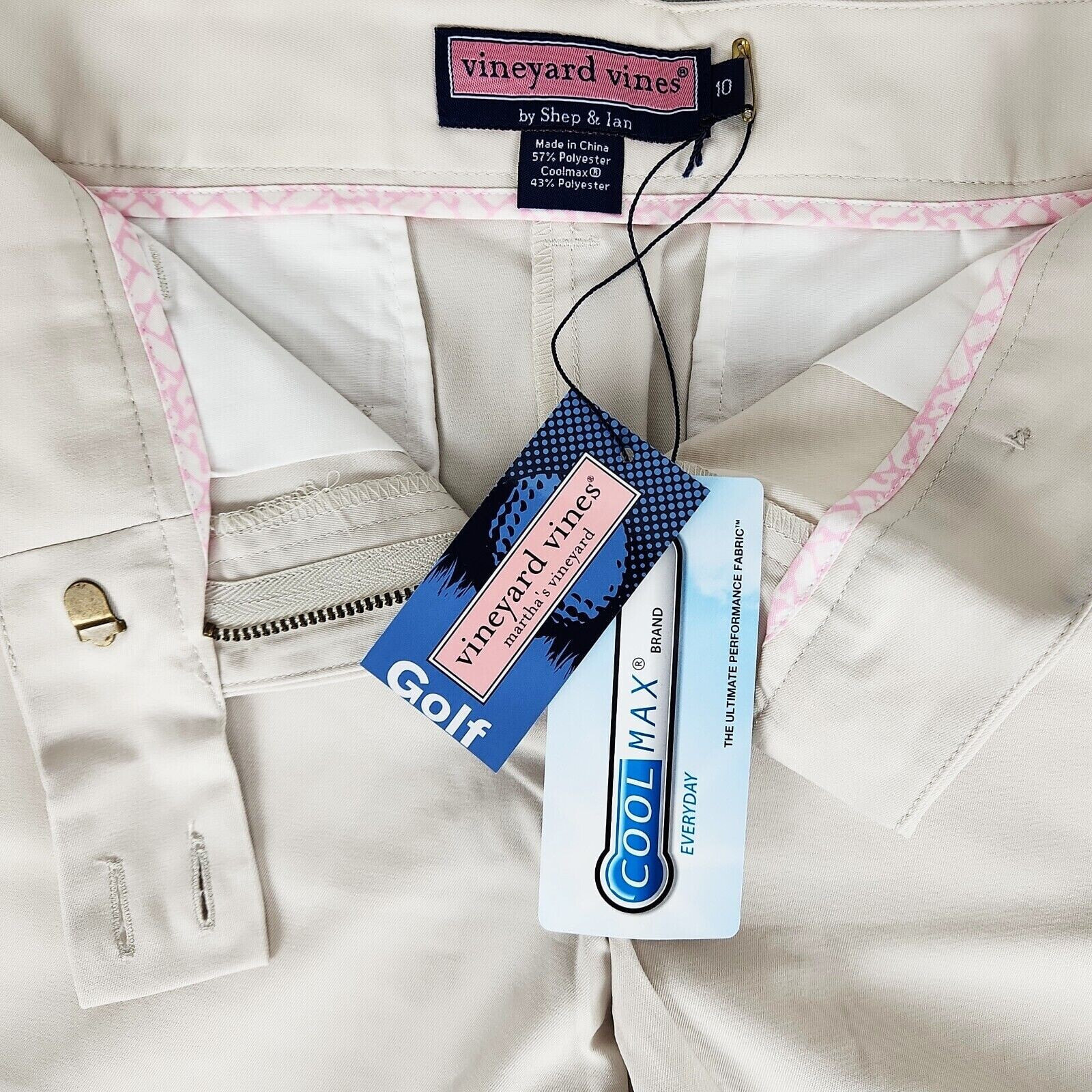 New Vineyard Vines khaki Caddie Bermuda gold shorts. They are a women’s size 10 with the original tags still attached.